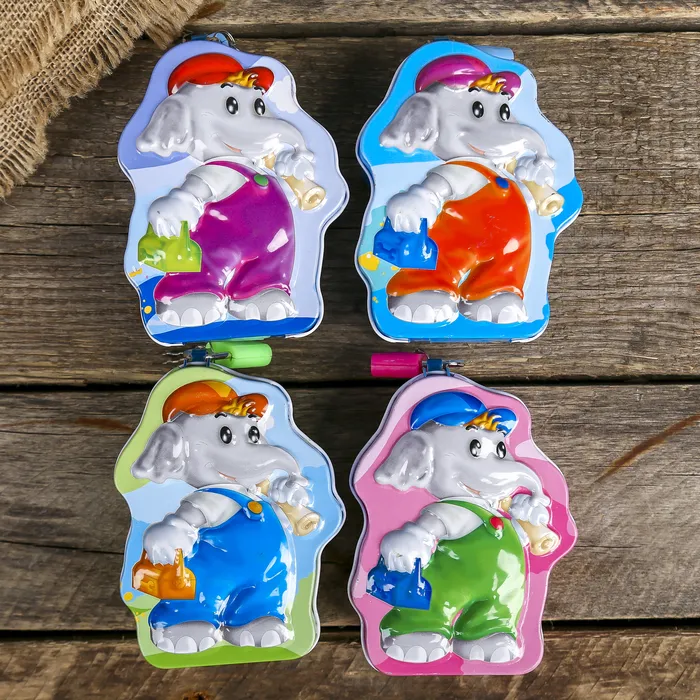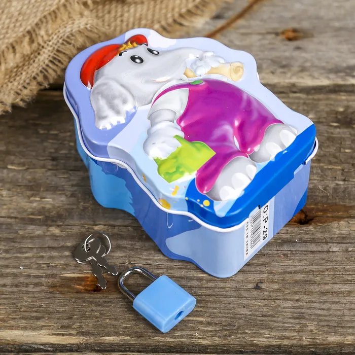 Копилка для денег с замком и ключами «Слонёнок-строитель», металл, 10.5×8×4.5 см, МИКС — Характеристики
