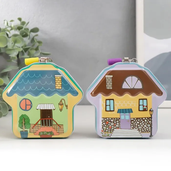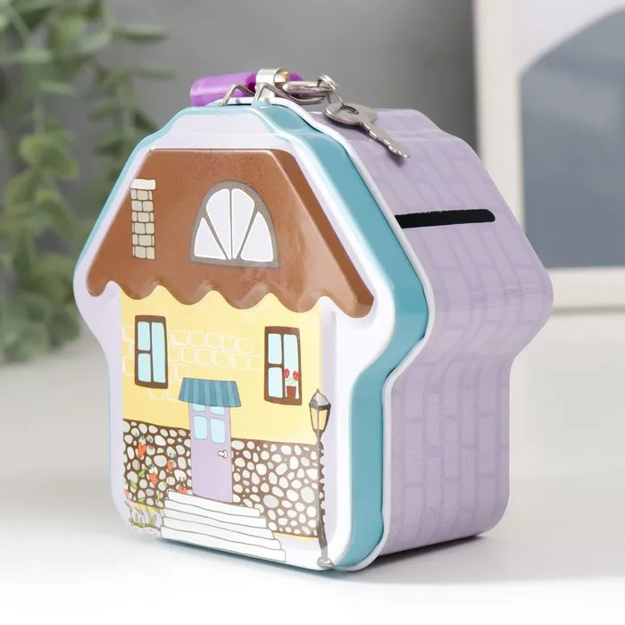 Копилка для денег с замком и ключом «Домик», металл, 5×10×9.2 см, МИКС — Характеристики