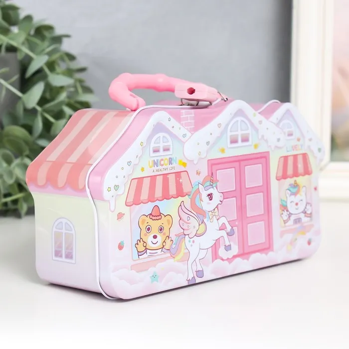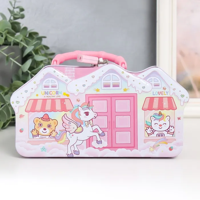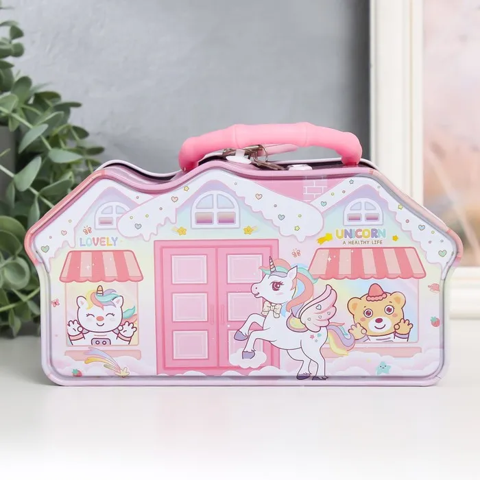 Копилка для денег с замком и ключом «Домик с жителями», металл, 19×6.5×9.5 см, МИКС — Характеристики
