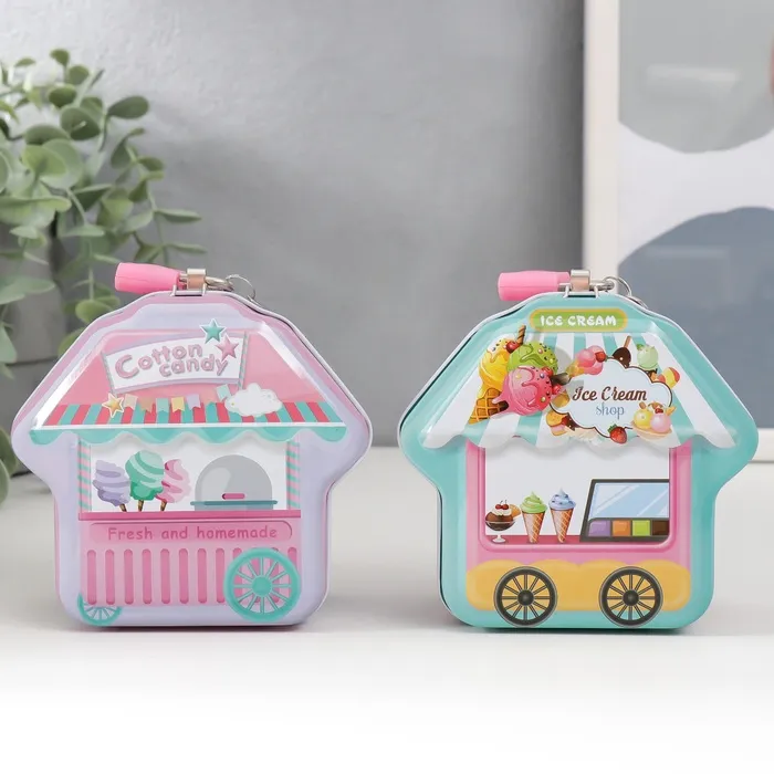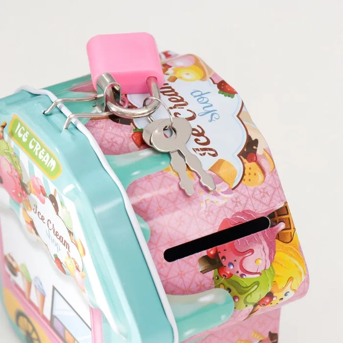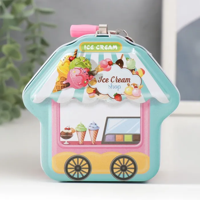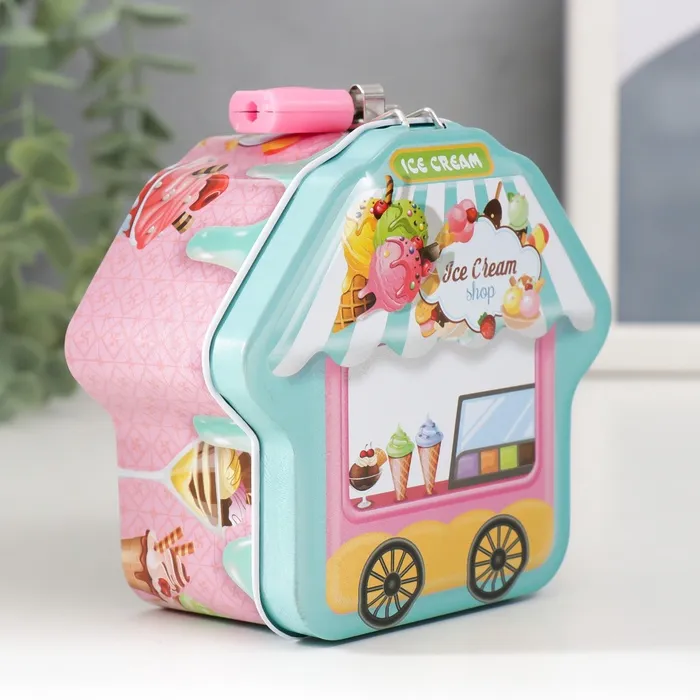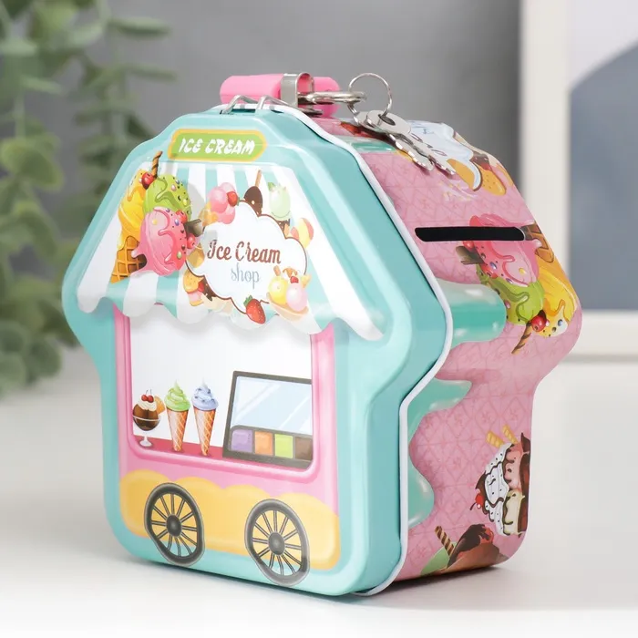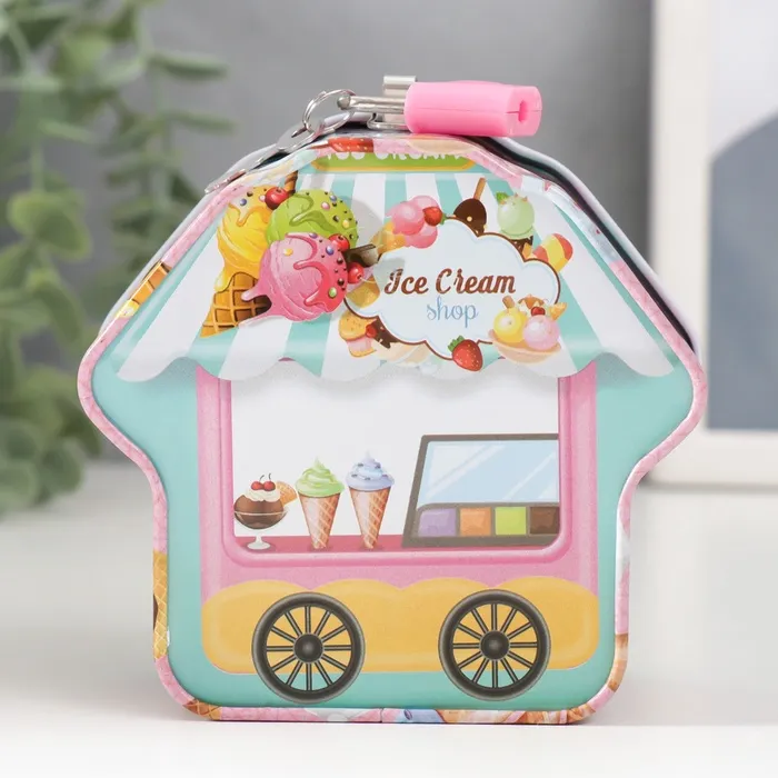 Копилка для денег с замком и ключом «Киоск с мороженым», металл, 9×10×5 см, МИКС — Характеристики