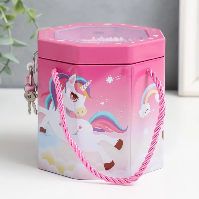 Копилка для денег с замком и ключом «Сказочные сюжеты. Шестиугольник», металл, 11.5×11.5×12 см, МИКС — Характеристики