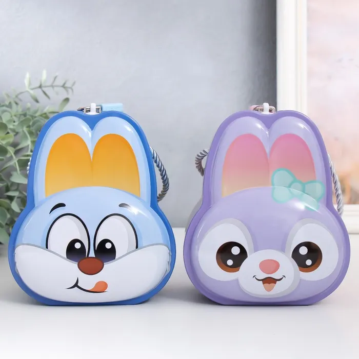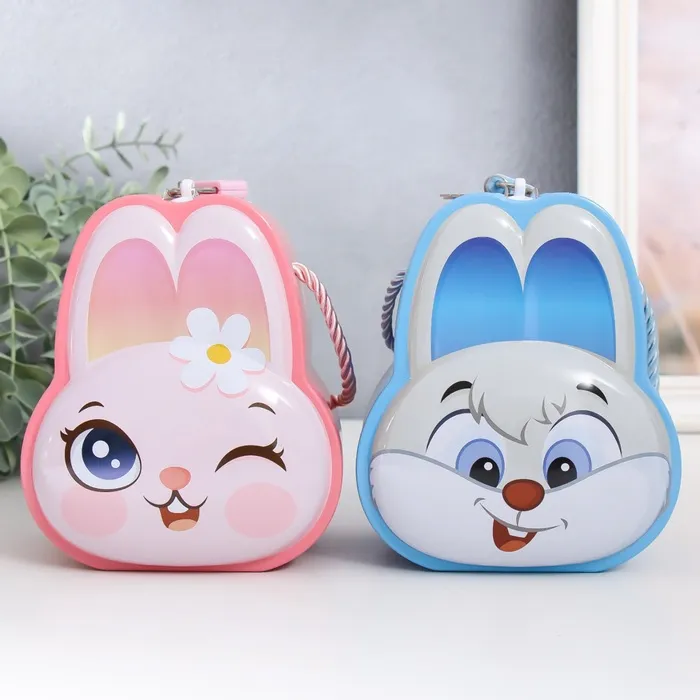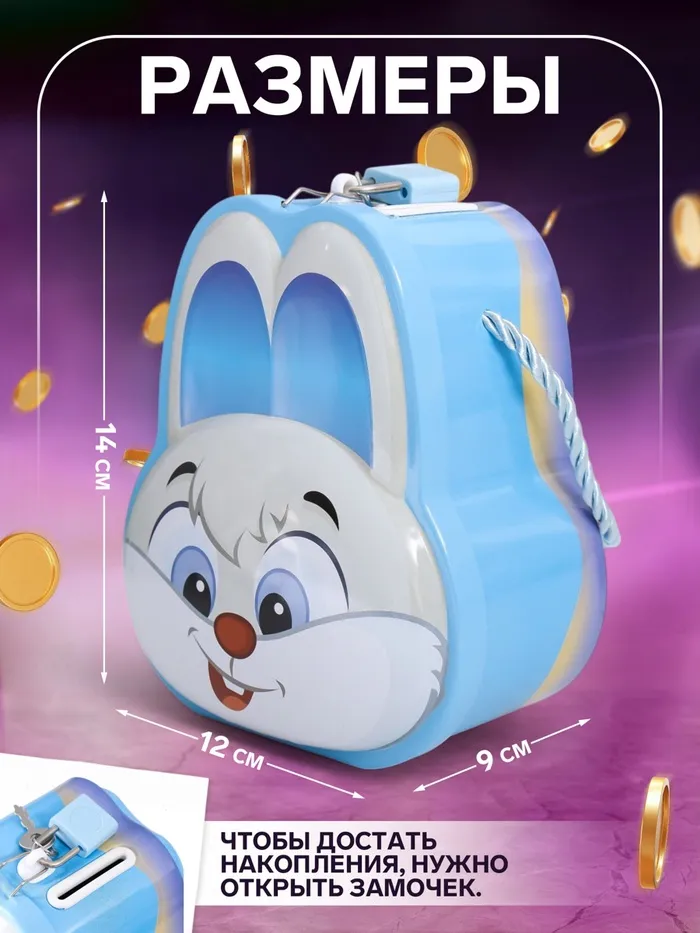 Копилка для денег с замком и ключом «Зайчик/Зайка», металл, 12×9×14 см, МИКС — Характеристики