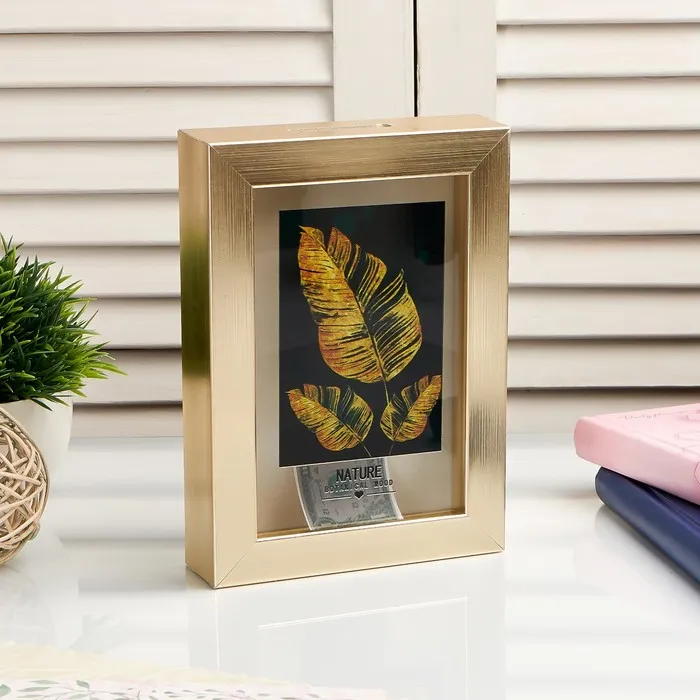 Копилка для денег интерьерная «Золотые пёрышки», для купюр, монет, пластик 17×12×3.8 см