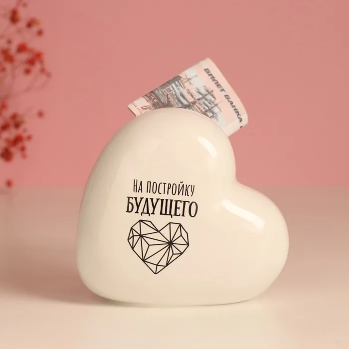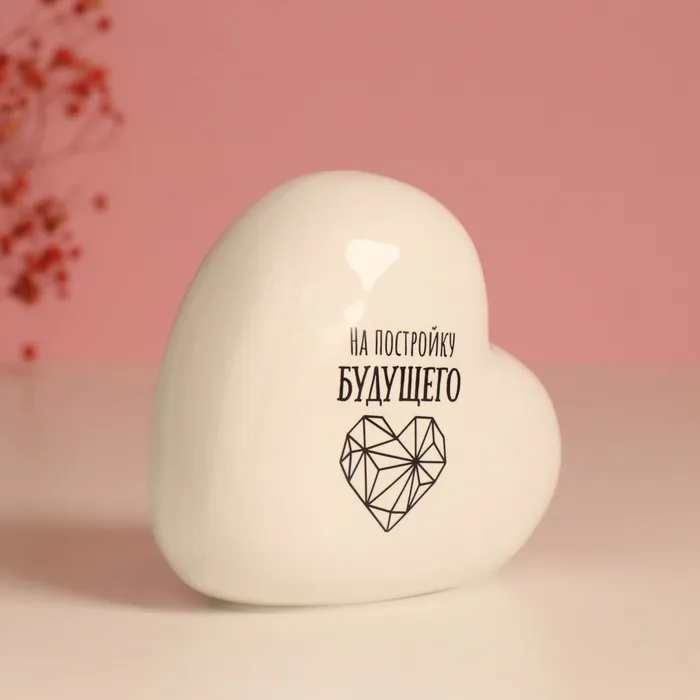 Копилка для денег «Сердце. На постройку будущего», керамика, бела,я 10.5×5×9.5 см — Характеристики