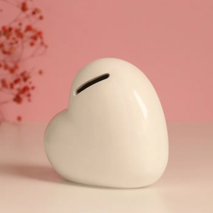 Копилка для денег «Сердце. На постройку будущего», керамика, бела,я 10.5×5×9.5 см
