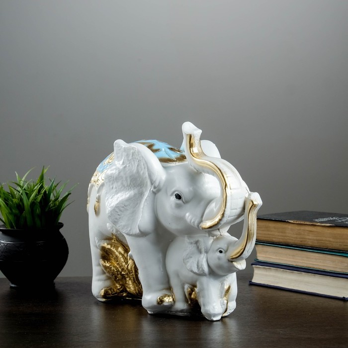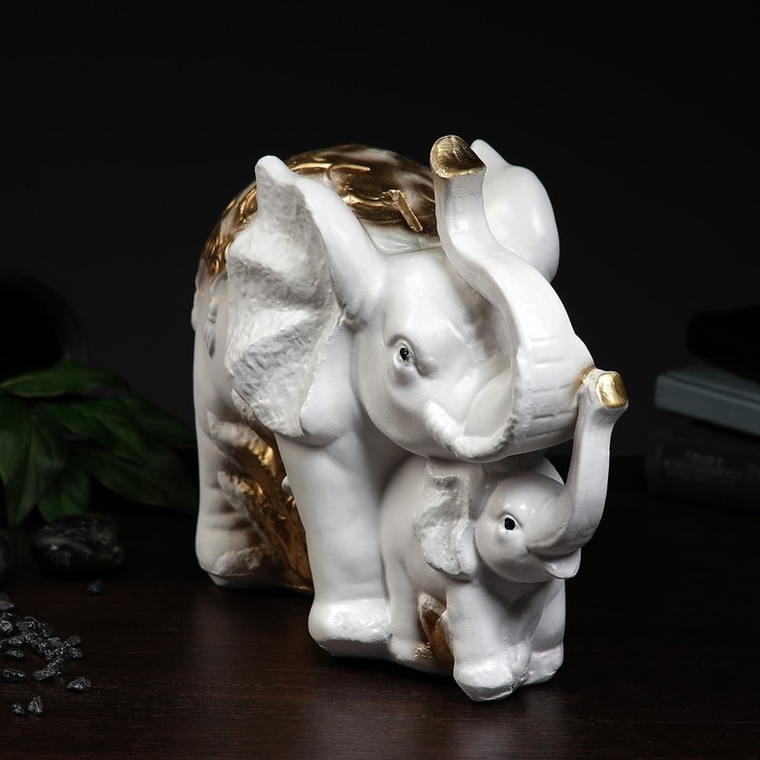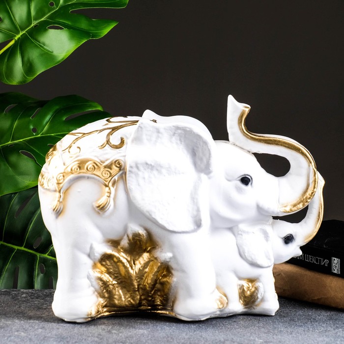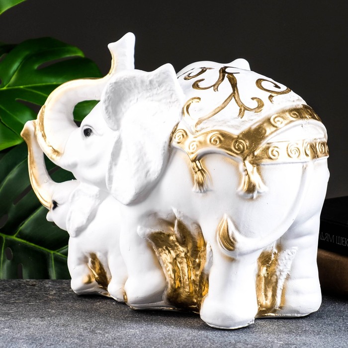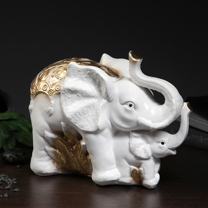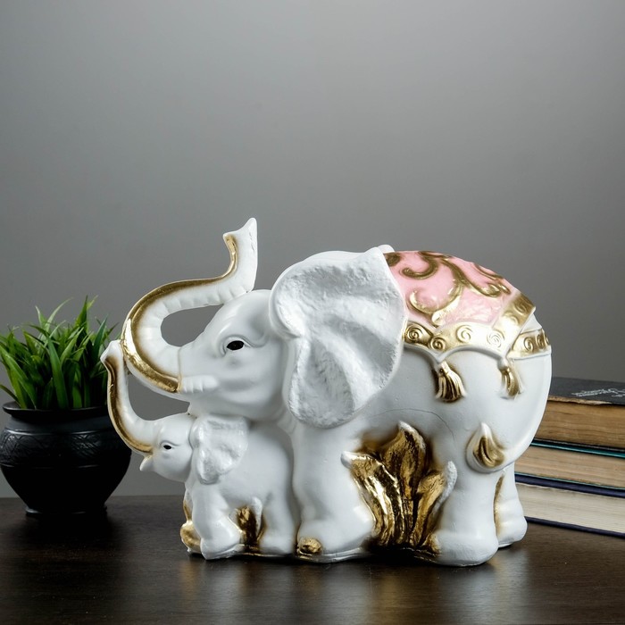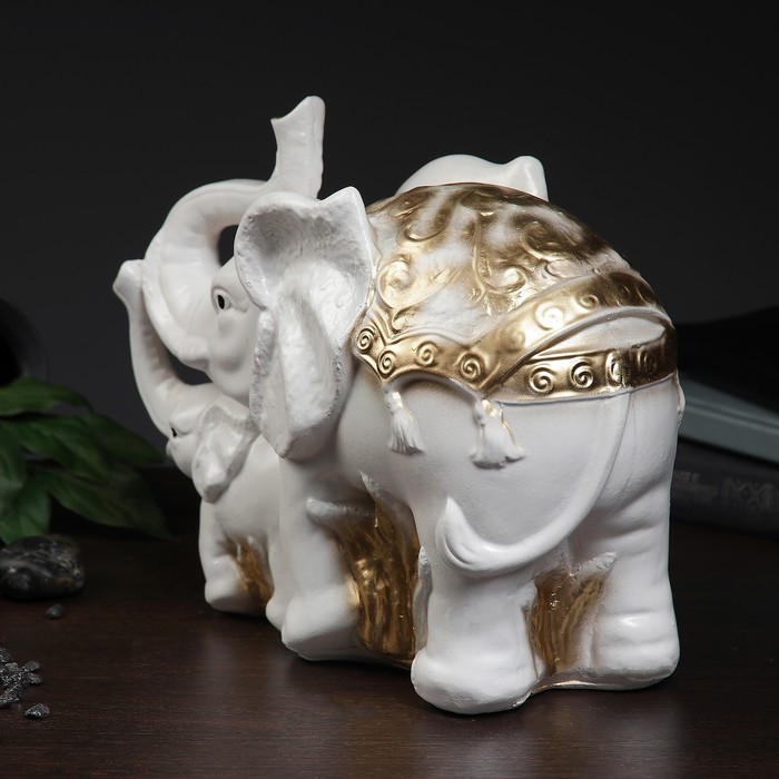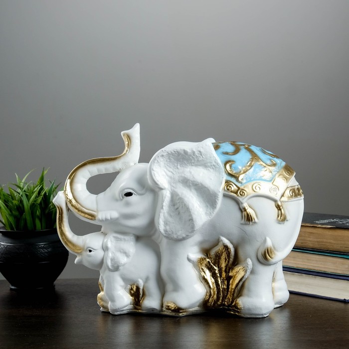 Копилка для денег «Слон со слонёнком», гипс, бело-золотой, 16×33×25 см, МИКС — Характеристики