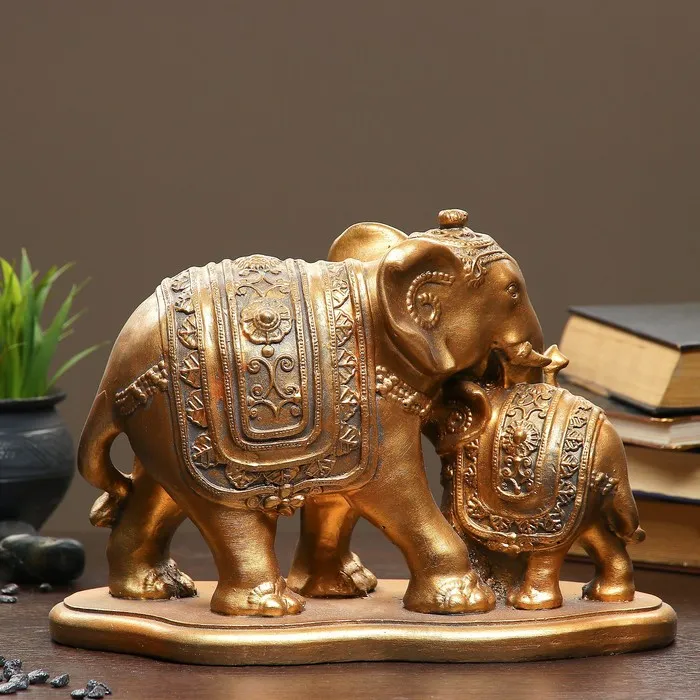 Копилка для денег «Слон со слонёнком», гипс, бронза, 15×32 см — Характеристики