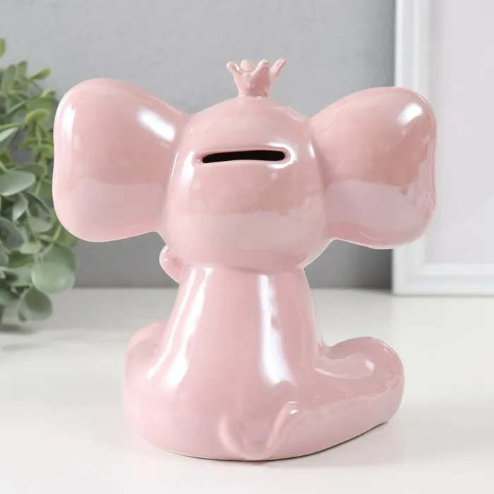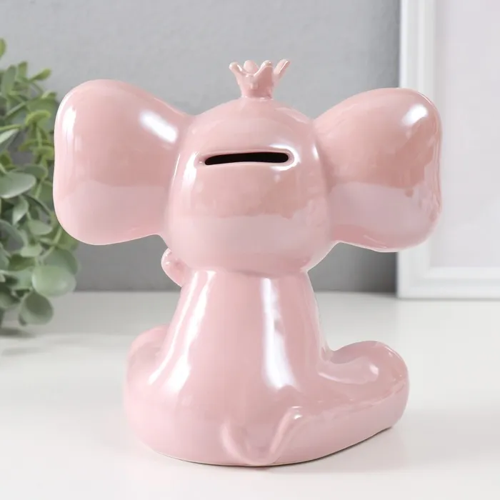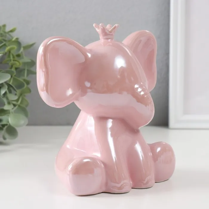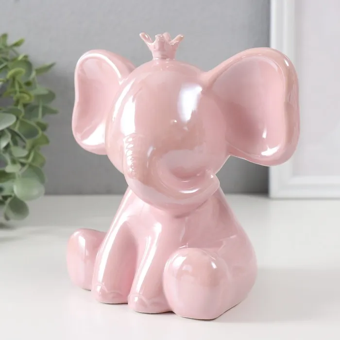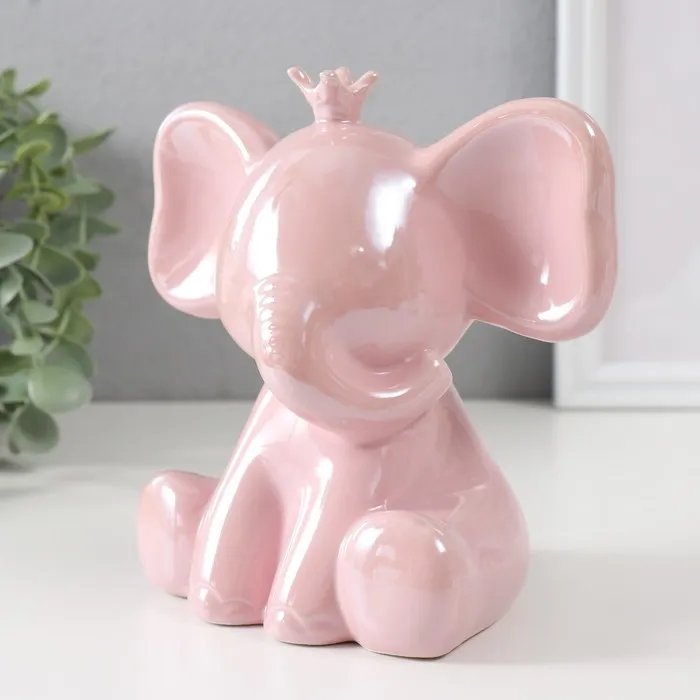 Копилка для денег «Слонёнок в короне», керамика, розовый перламутр, 14.5×9.7×14.8 см — Характеристики