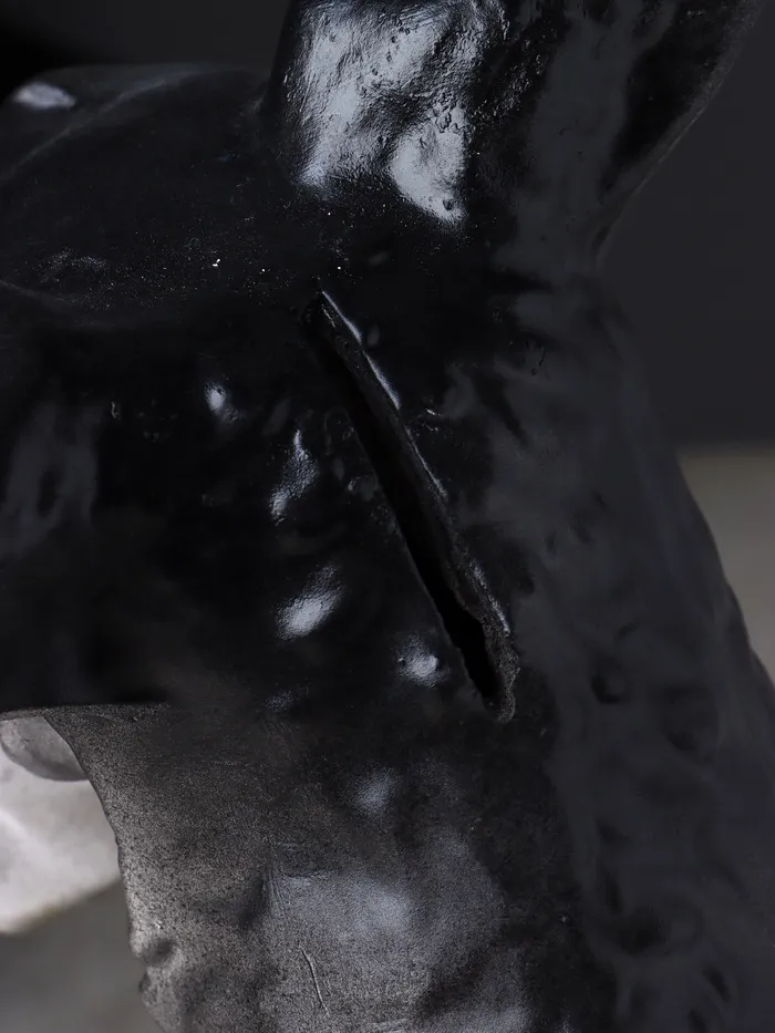 Изготовленная из гипса и покрытая качественной краской, копилка отличается прочностью и долговечностью. Чёрный и белый цвета придают ей универсальность, позволяя легко вписаться в любой интерьер — от классического до современного.