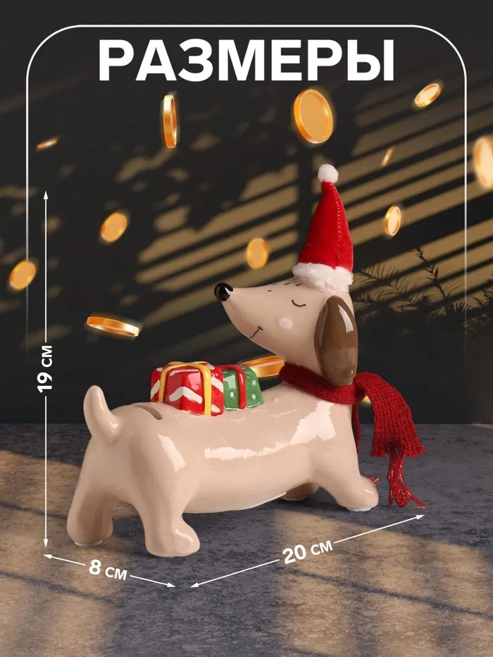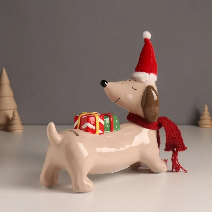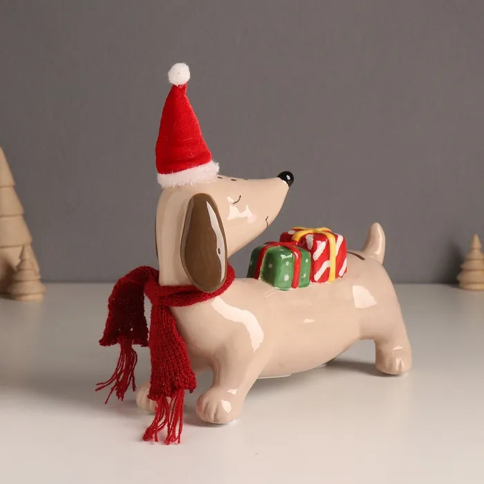 Копилка для денег «Собака такса новогодняя», керамика, 19×20×8 см — Характеристики