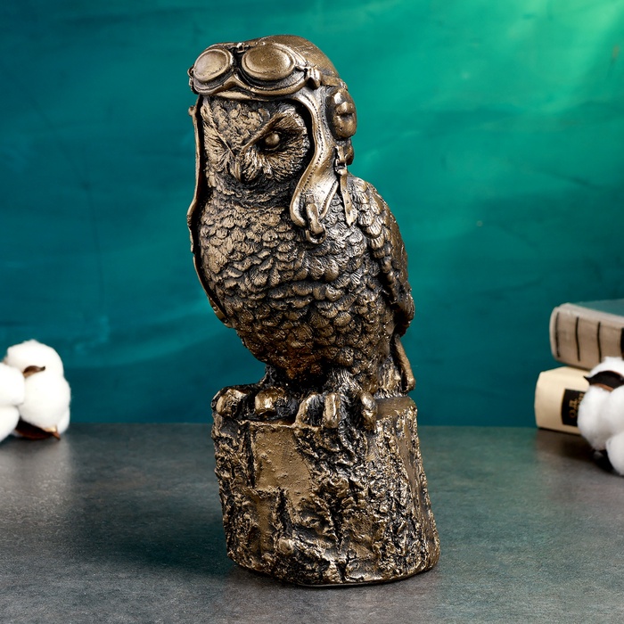 Копилка для денег «Сова авиатор», 14×12×25 см, гипс под бронзу — Характеристики