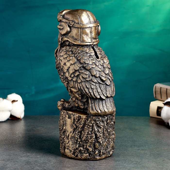 Копилка для денег «Сова авиатор», 14×12×25 см, гипс под бронзу
