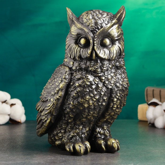 Копилка для денег «Сова большая», гипс, чёрно-золотая, 27 см