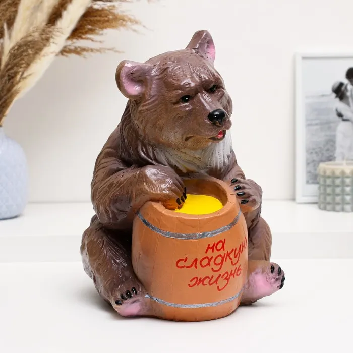 Копилка для денег «Медведь с бочонком», гипс, 27×24×28 см