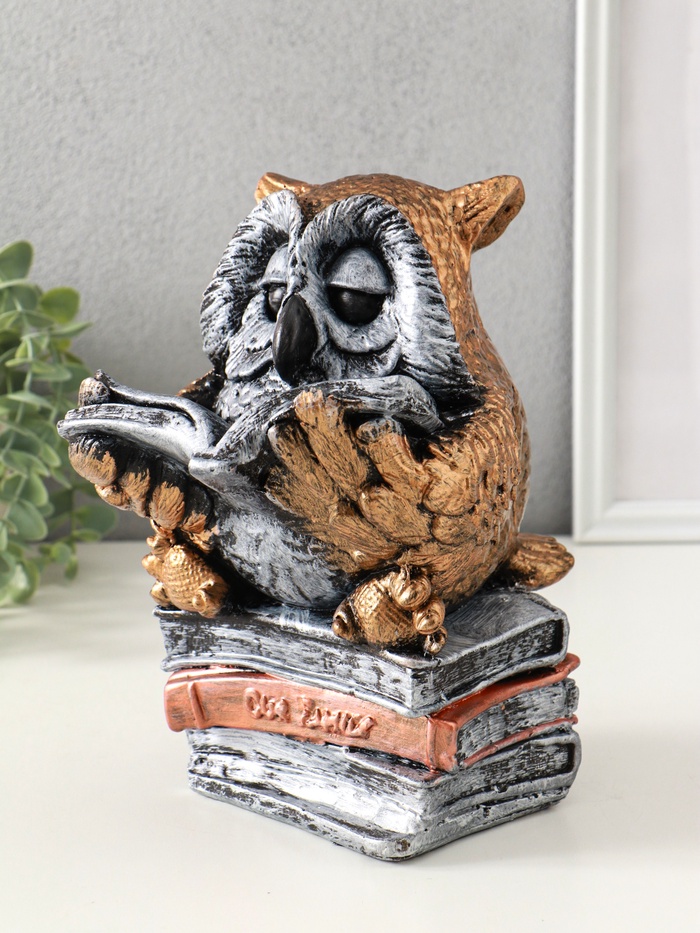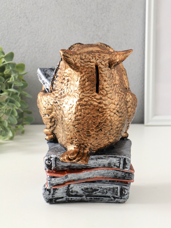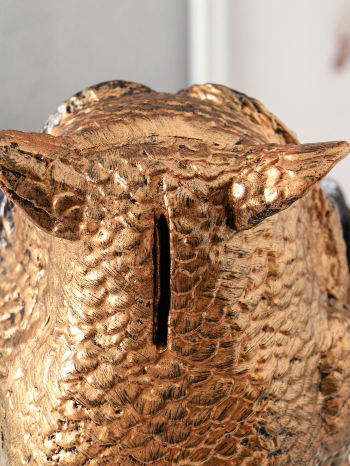 Эта сова-копилка станет не просто местом для хранения сбережений, а настоящим талисманом финансового благополучия. Мудрая птица с книгой напоминает о ценности знаний и разумном подходе к деньгам. Её классический дизайн в бронзово-серебряных тонах делает её стильным акцентом в интерьере домашнего кабинета или гостиной.