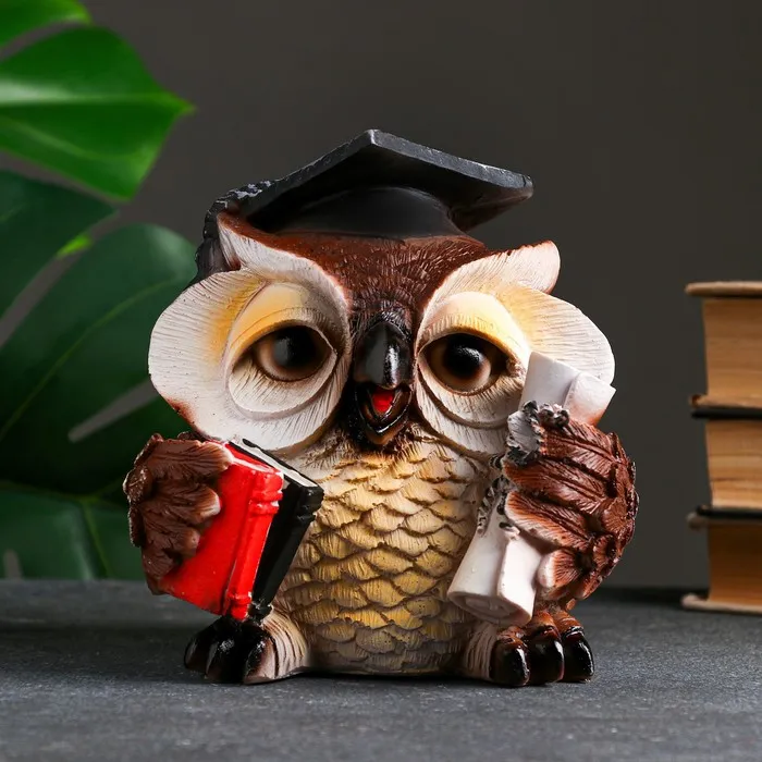 Копилка для денег «Сова учёная», полистоун, коричневая, 18×17×19 см — Характеристики