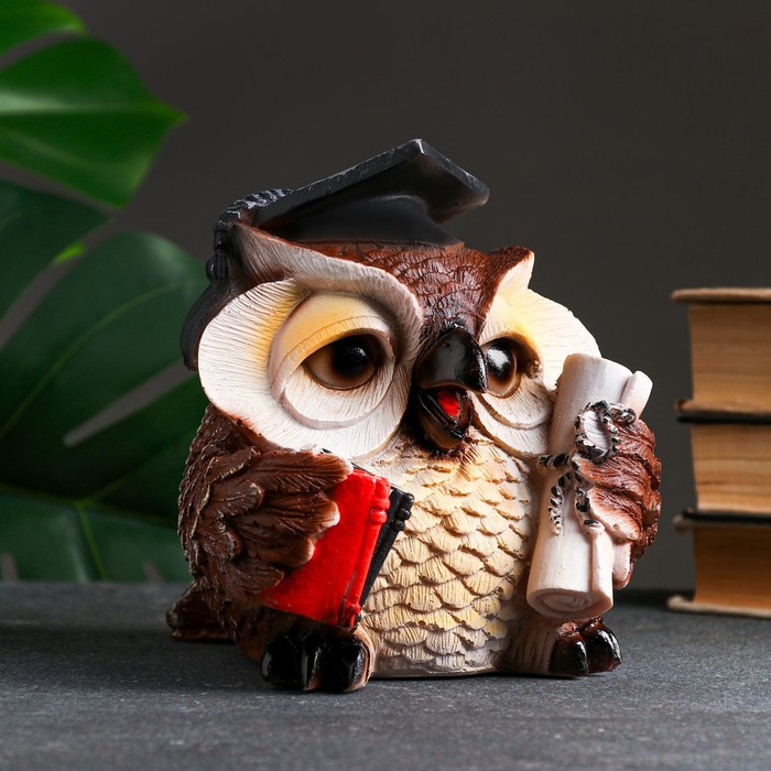 Копилка для денег «Сова учёная», полистоун, коричневая, 18×17×19 см