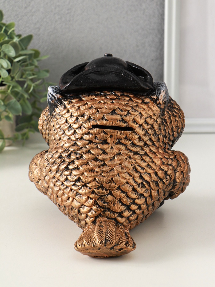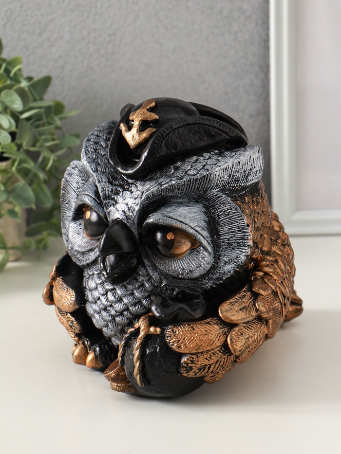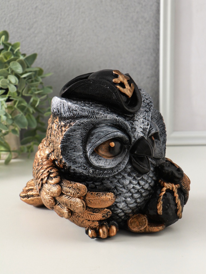 Копилка для денег «Сова в треуголке», гипс, 18×17 см, под бронзу с серебром — Характеристики