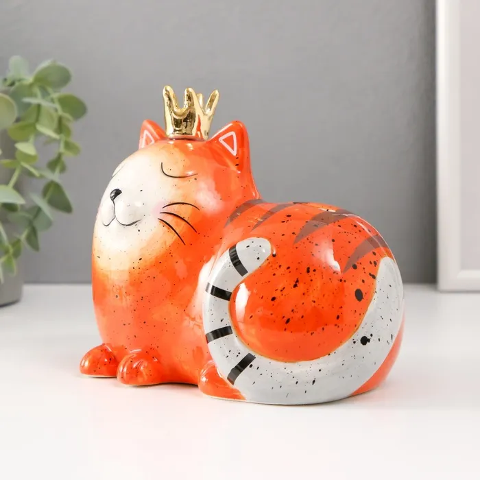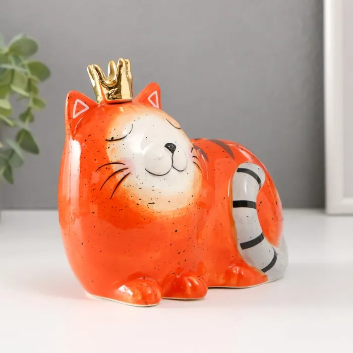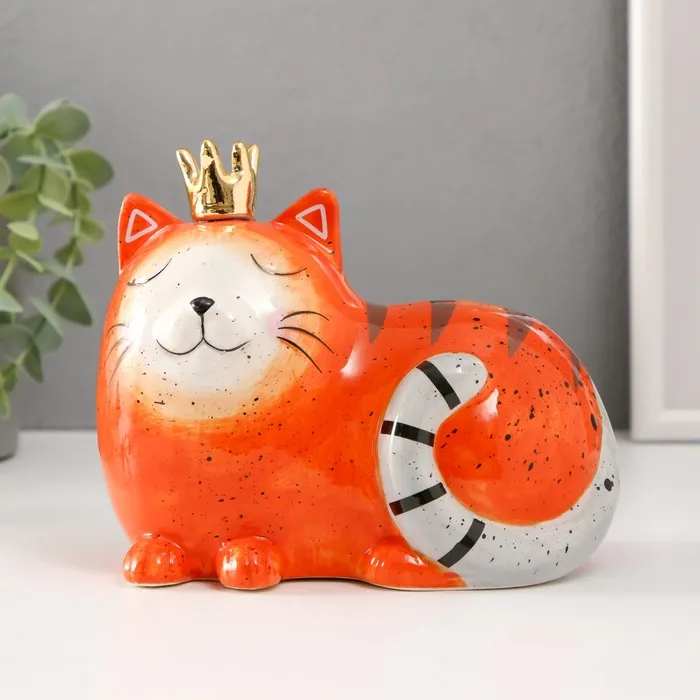 Копилка для денег «Спящая рыжая кошка в короне», керамика, 16.2×10.3×12.6 см — Характеристики