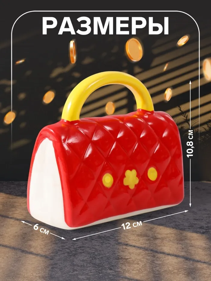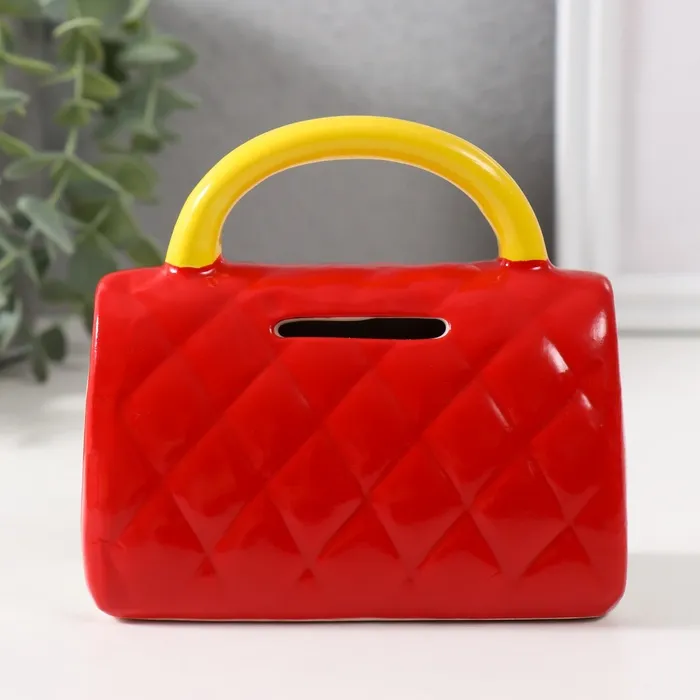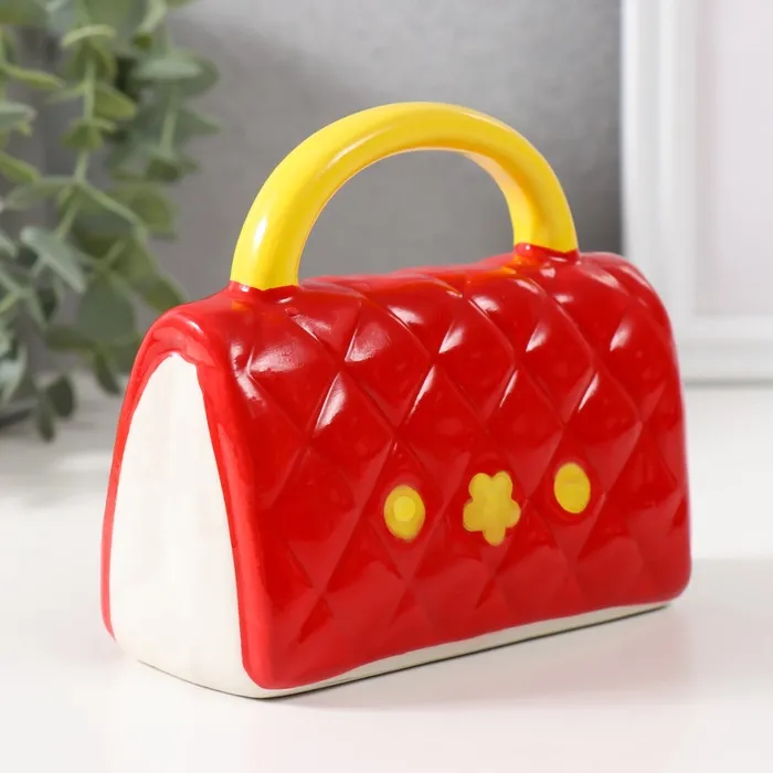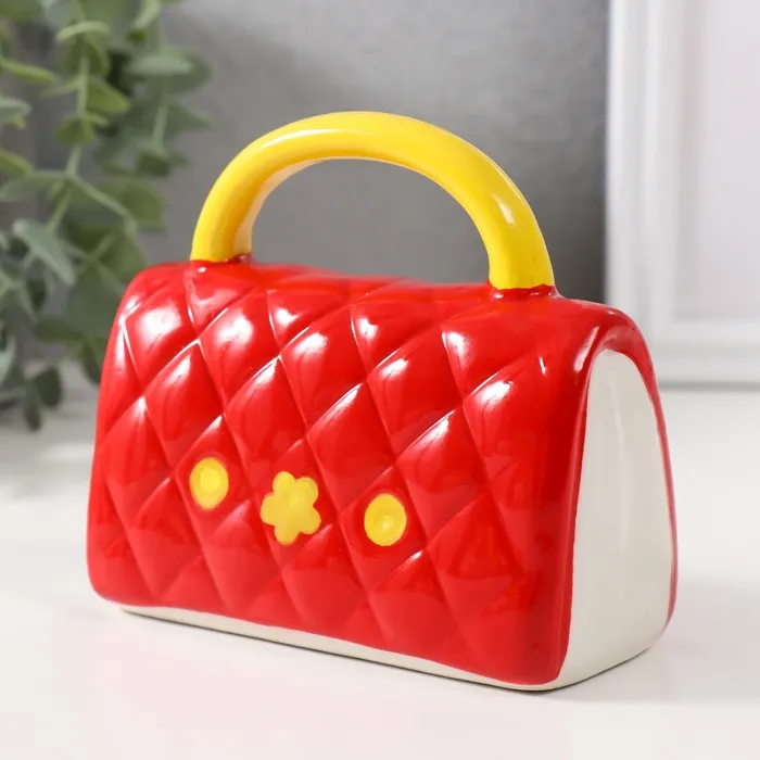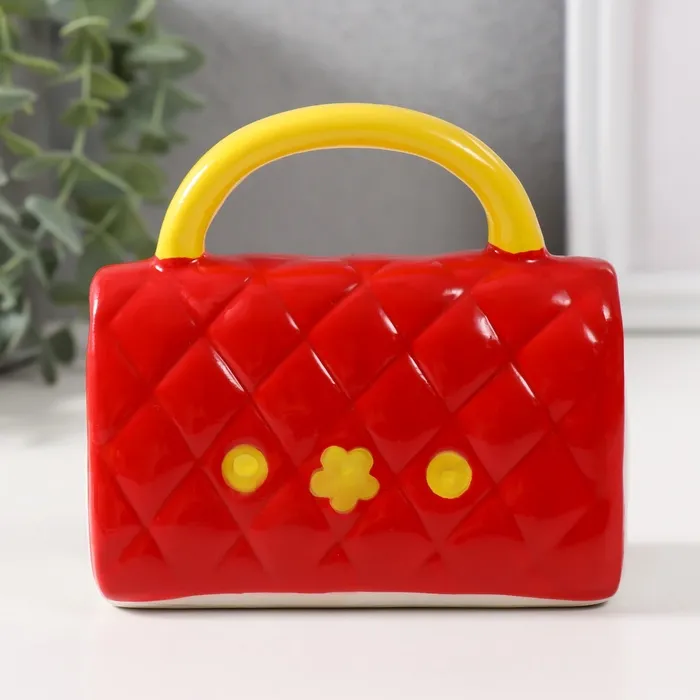 Копилка для денег «Стёганная красная сумочка с цветком», керамика, 12×6×10.8 см — Характеристики