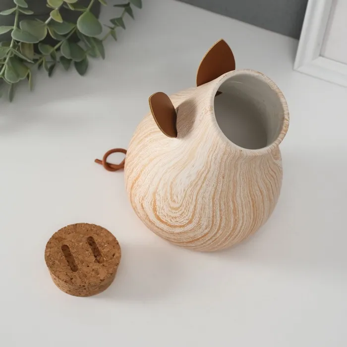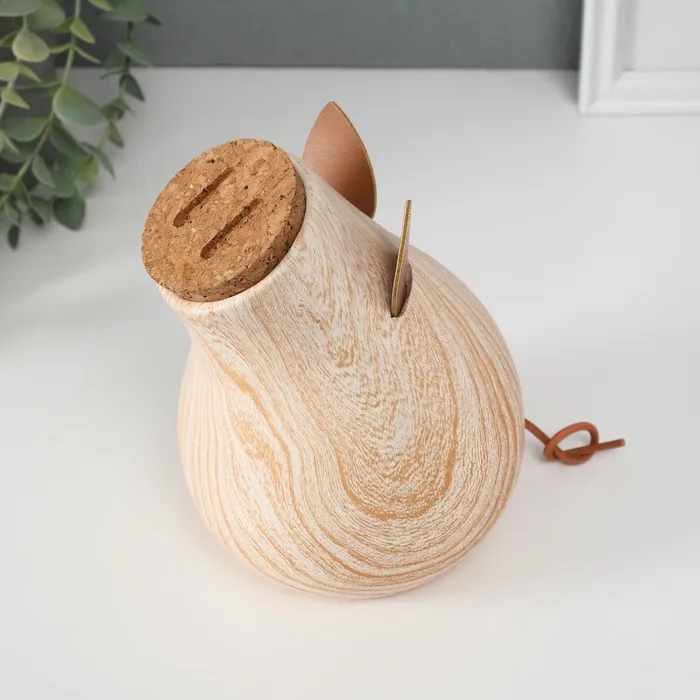 Копилка для денег «Свинья мордашка с большим пяточком», керамика под дерево, 13.3×11.7×16.3 см — Характеристики