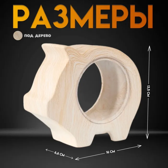 Копилка для денег «Свинья с пустым животом», керамика под дерево, 16×6.6×13.5 см — Характеристики