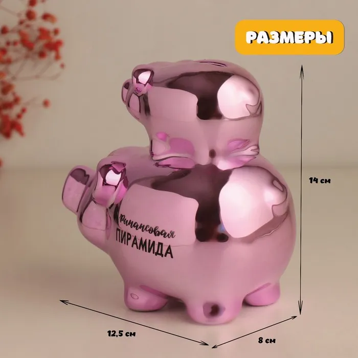 Копилка для денег «Свинки: Финансовая пирамида», керамика, розовая, 12.5×8×14 см — Характеристики