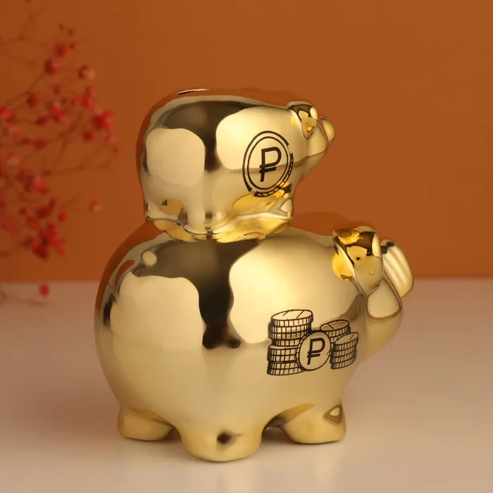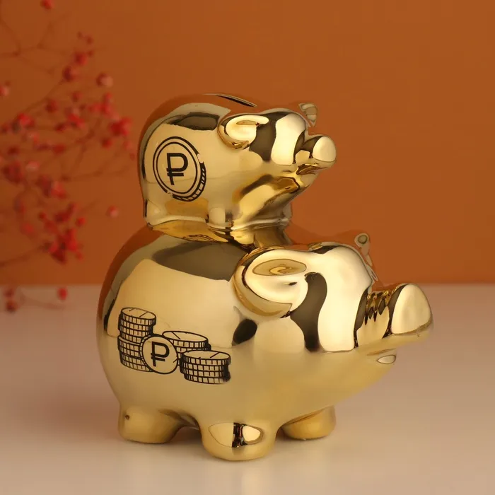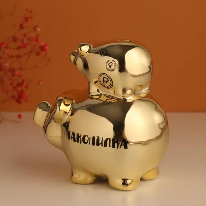 Копилка для денег «Свинки: Накопилка», керамика, золотая, 12.5×8×14 см — Характеристики