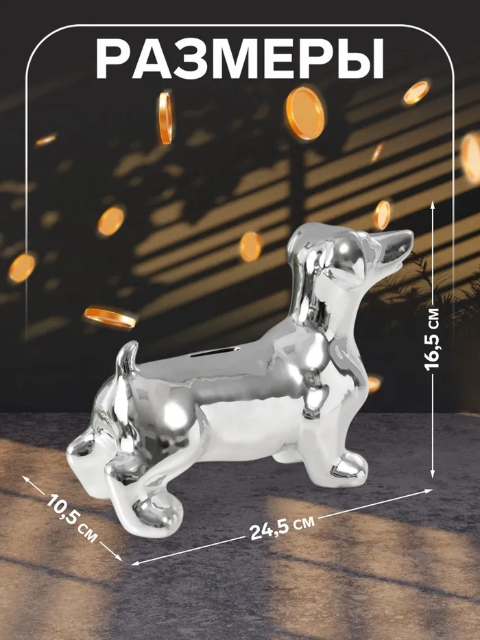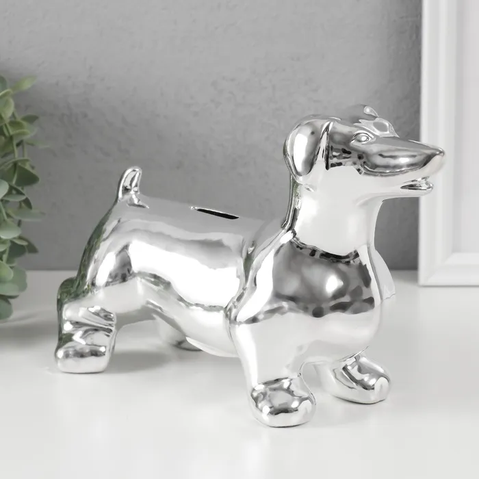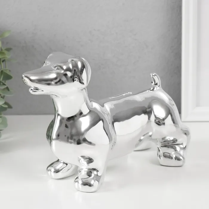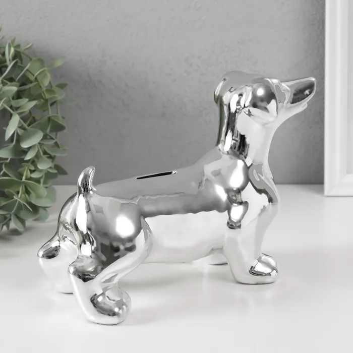 Копилка для денег «Такса серебристая», керамика, 24.5×10.5×16.5 см — Характеристики