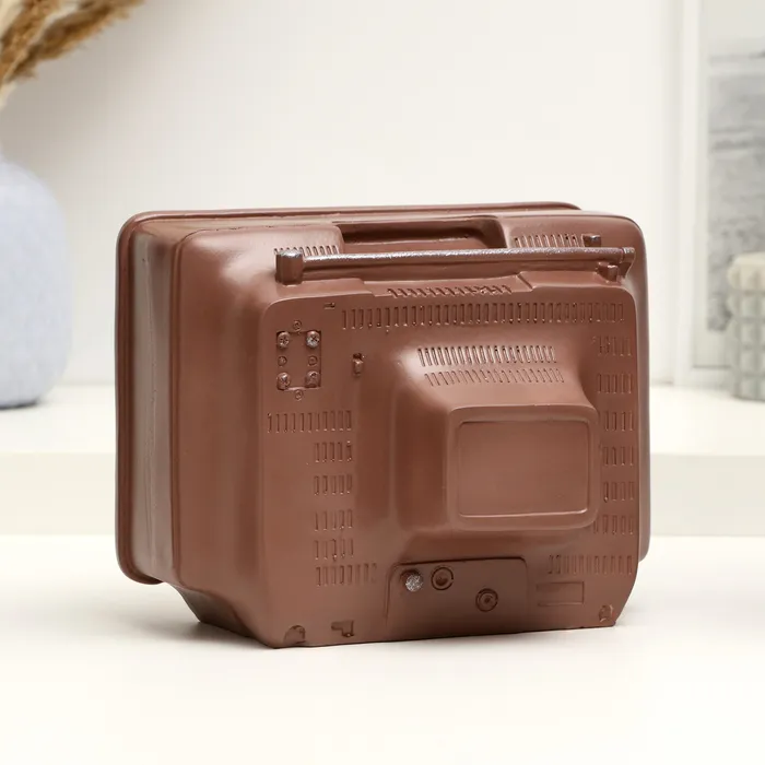 Представляем оригинальную копилку в виде телевизора, которая станет не только функциональным аксессуаром, но и стильным элементом интерьера. Её высота составляет 15 см, а строгий прямоугольный дизайн с текстурной отделкой под дерево добавляет ей особого шарма. Изготовленная из прочного гипса и покрытая защитным лаком, эта копилка отличается долговечностью и устойчивостью к повреждениям. Коричневый цвет придаёт изделию благородный вид, гармонично вписывая его в любой интерьер.