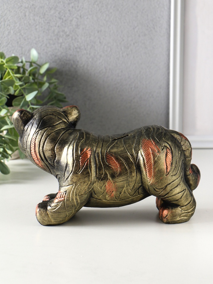 Символ года, приносящий удачу и достаток! Копилка «Тигр» золотая — это не просто емкость для хранения денег, а изящный интерьерный аксессуар. Гипсовая фигура станет сильным денежным талисманом и ярким украшением вашего дома или офиса.