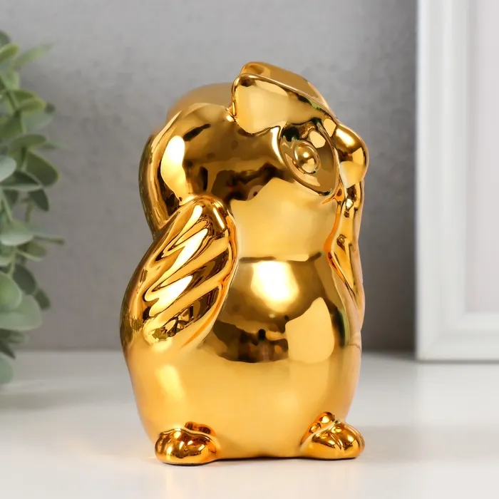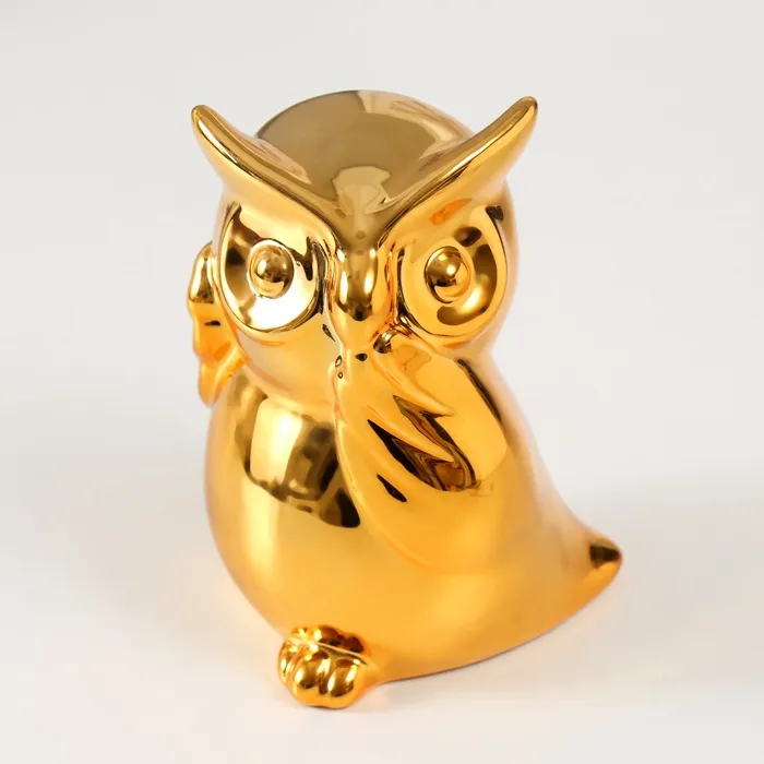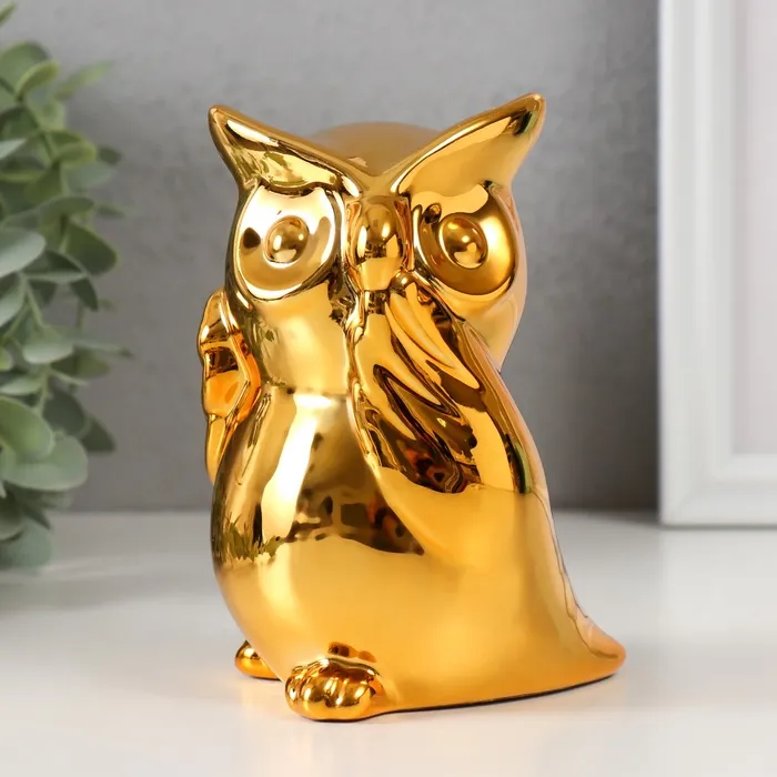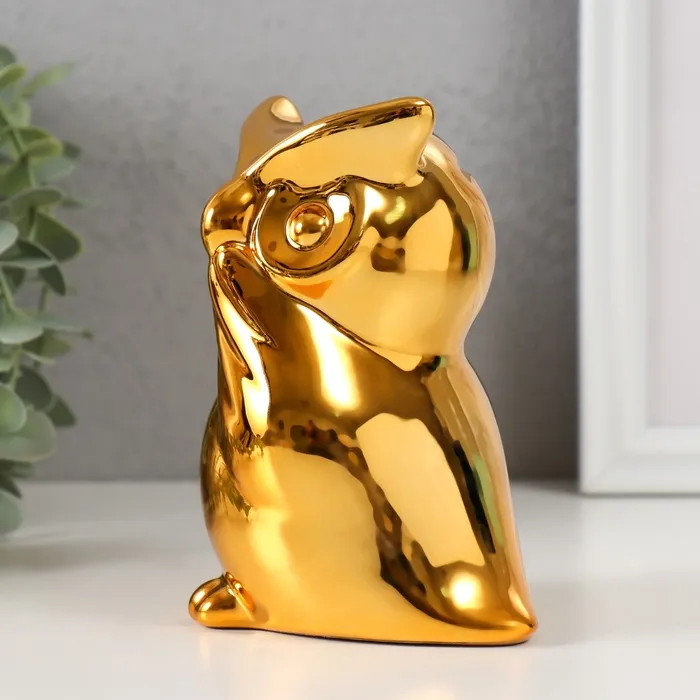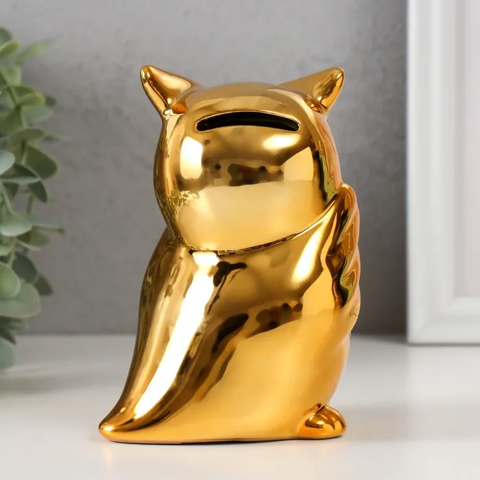 Копилка для денег «Удивлённая сова», керамика, золото, 12×8×14 см — Характеристики