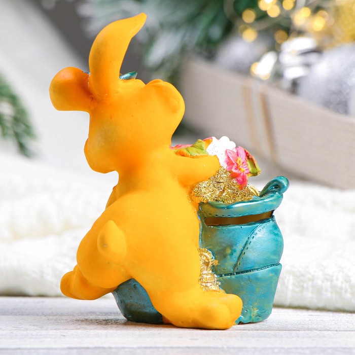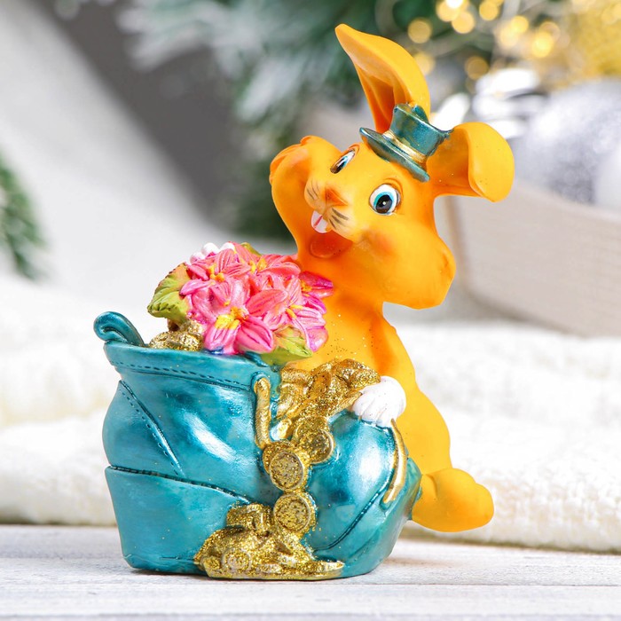 Копилка для денег «Заяц с цветами в башмаке», 11×7×12 см