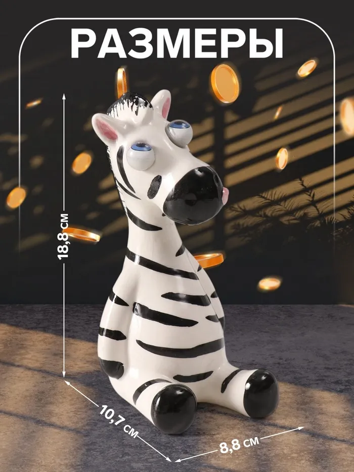 Копилка для денег «Зебра-пучеглазка», керамика, 8.8×10.7×18.8 см — Характеристики