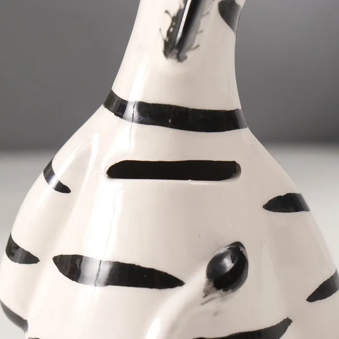 - Тематическое оформление: копилка в виде зебры понравится любителям наземных животных и станет отличным дополнением к коллекции сувениров.