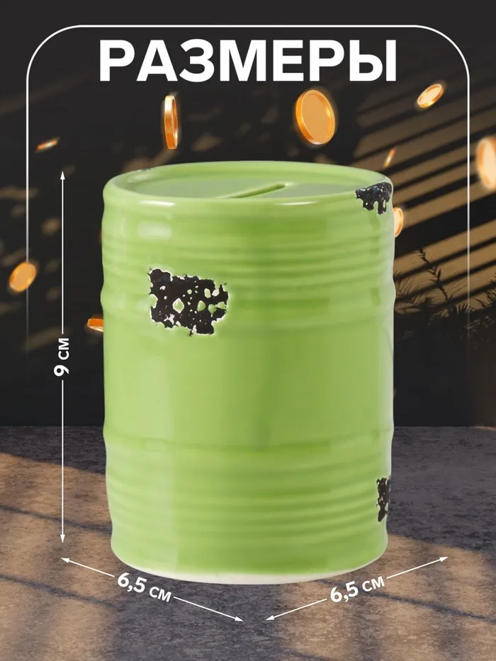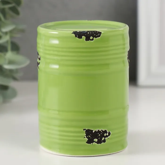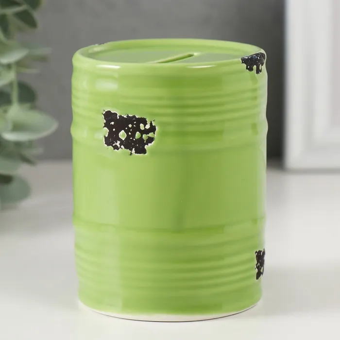 Копилка для денег «Зелёная бочка», керамика, 6.5×6.5×9 см — Характеристики