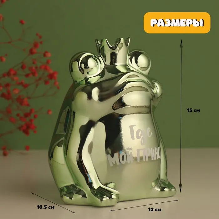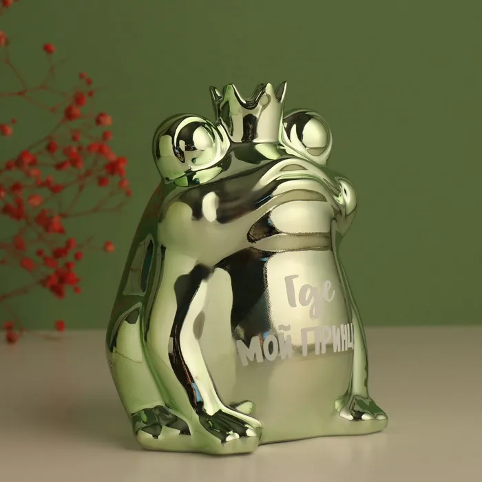 Копилка для денег "Зелёная лягушка: Где мой принц?», керамика, 12×10.5×15 см — Характеристики