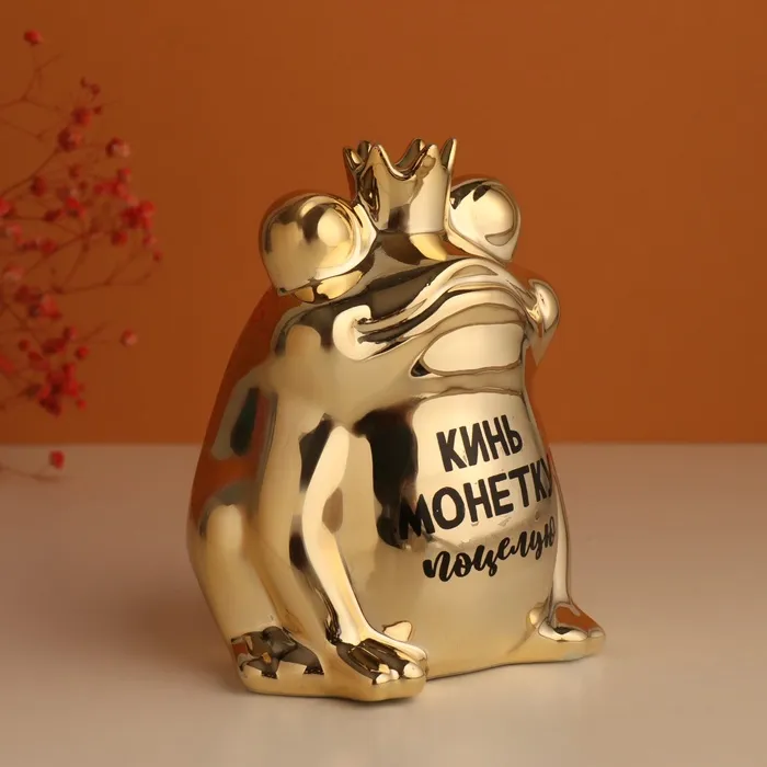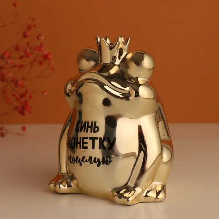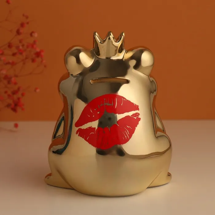 Копилка для денег «Золотая лягушка: Кинь монетку - поцелую». керамика, 12×10.5×15 см — Характеристики