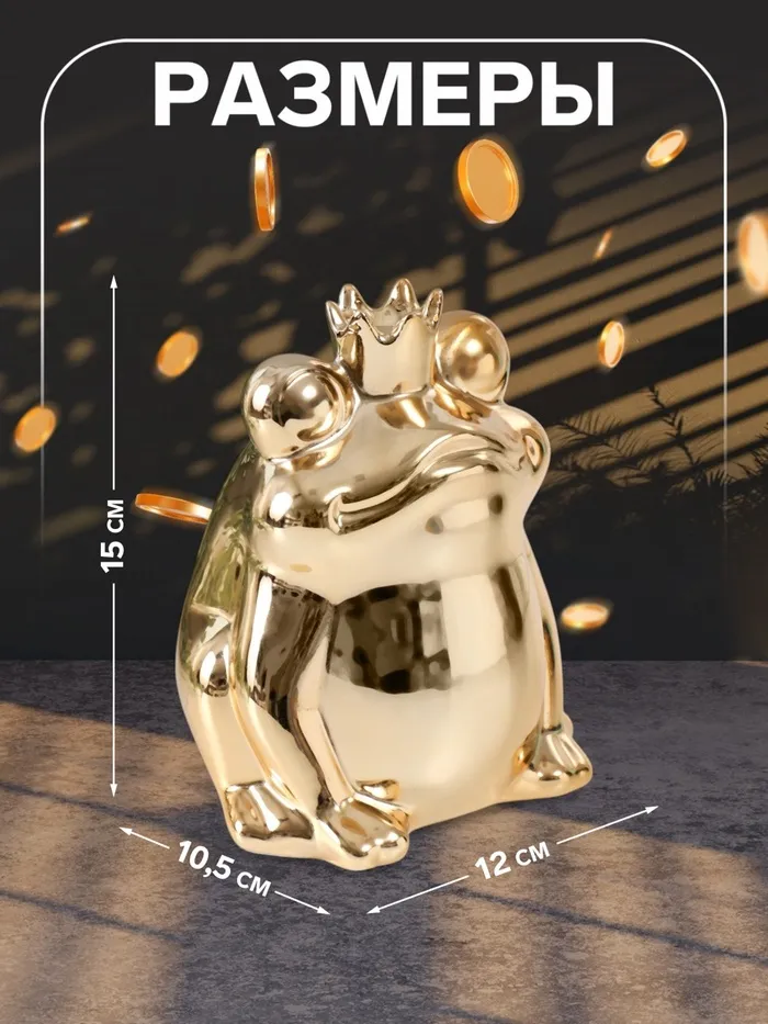 Копилка для денег «Золотая лягушка в короне», керамика, 12×10.5×15 см — Характеристики