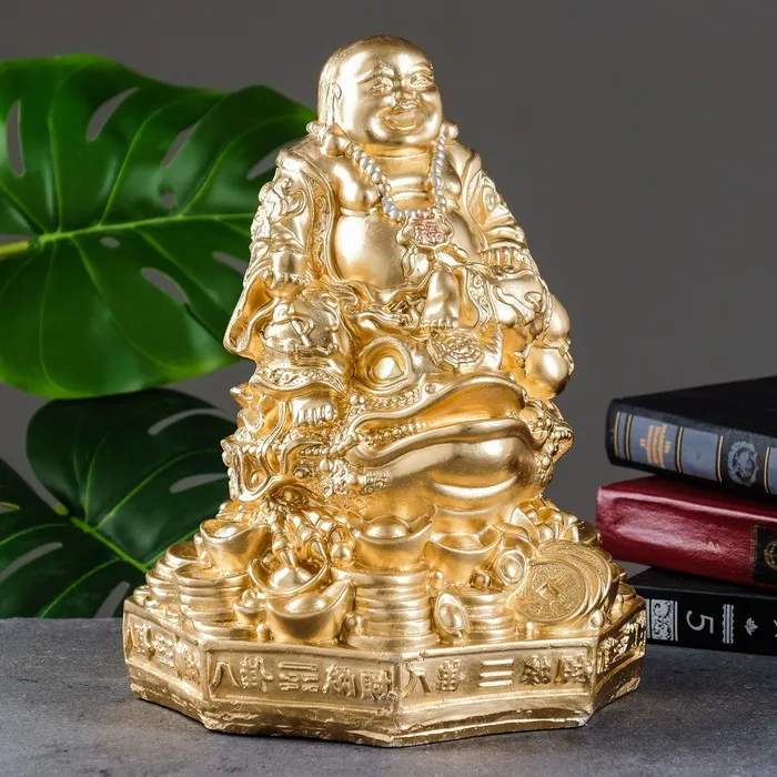 Копилка для денег «Хотей с мешком», гипс, золото, 22×22 см