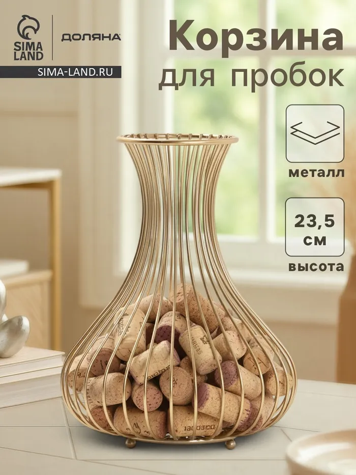 Преимущества- Универсальное применение: идеально подходит для сбора винных пробок и одновременно служит стильным элементом декора