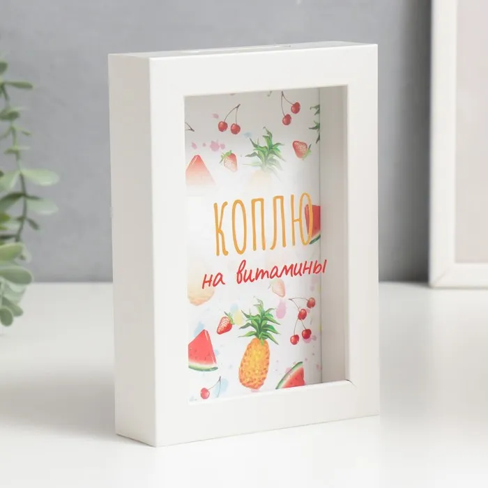 Копилка интерьерная пластик "Коплю на витамины" 17х12х3,8 см — Характеристики