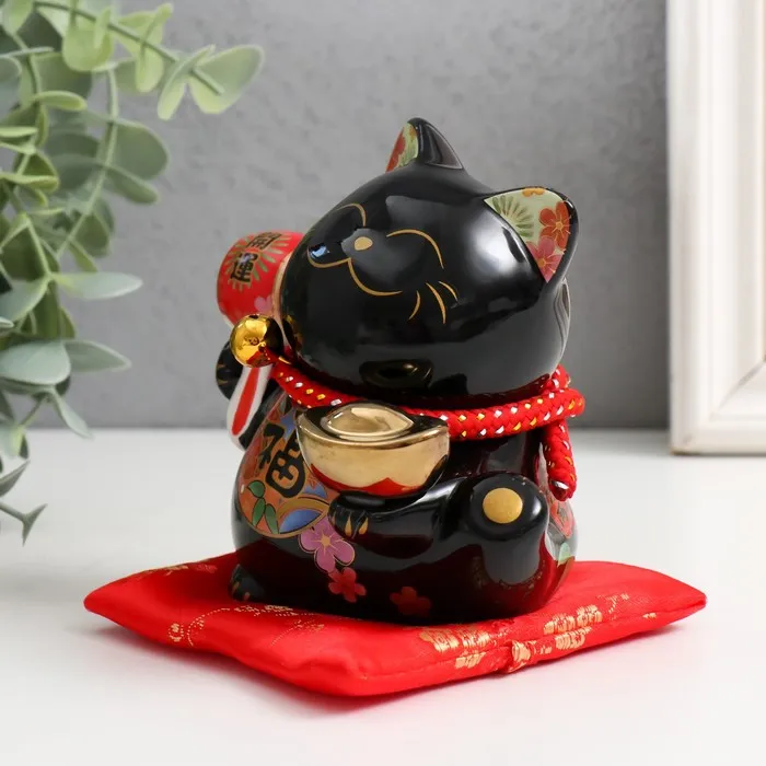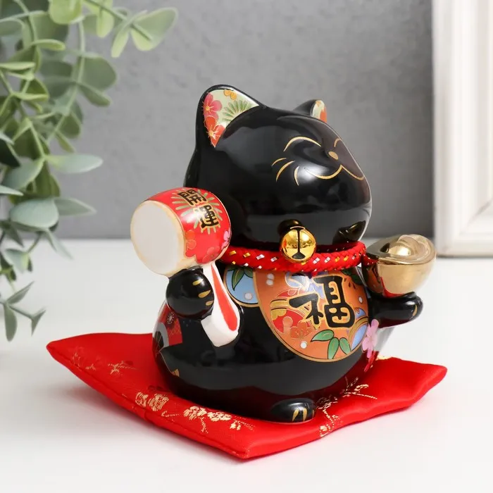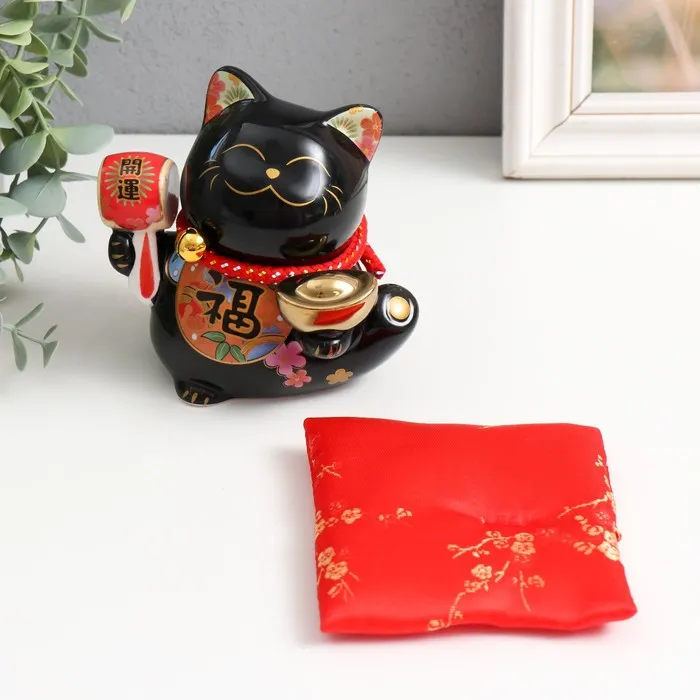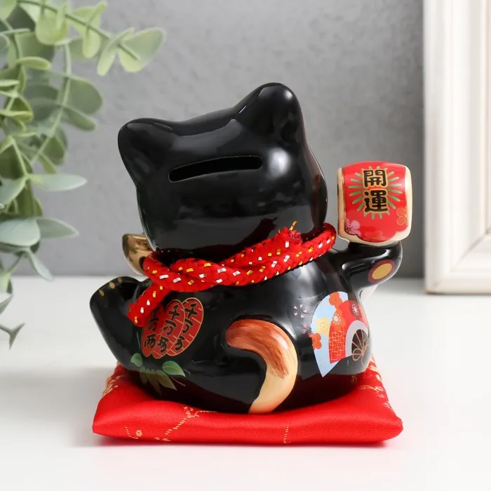 Копилка керамика "Кот Манэки-нэко с пожеланием счастья " черный 8,5х9,5х12,5 см — Характеристики