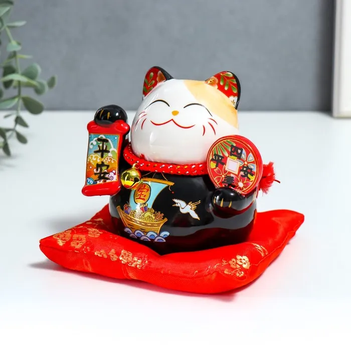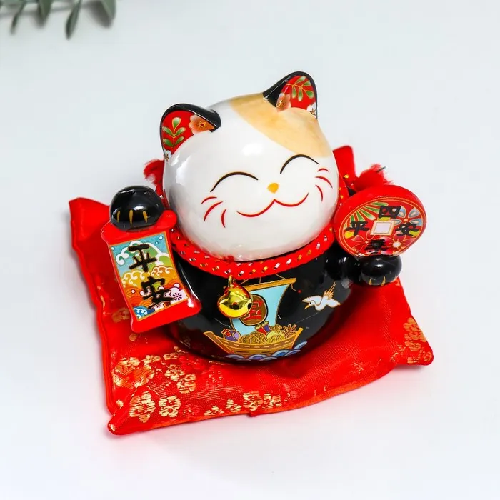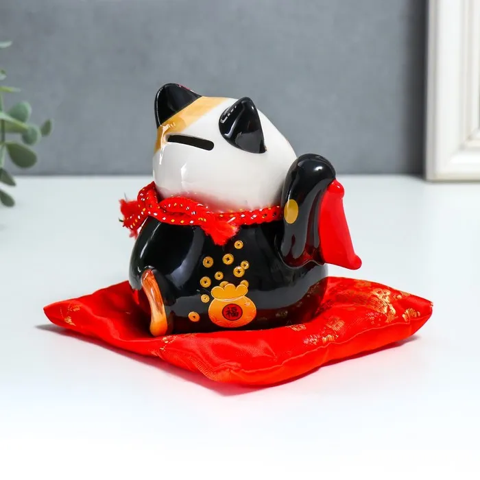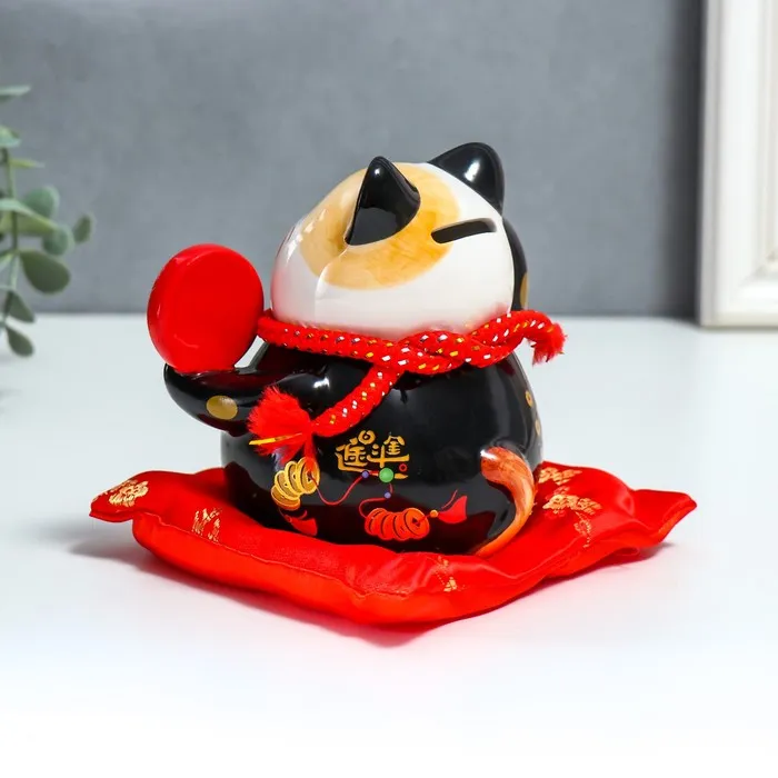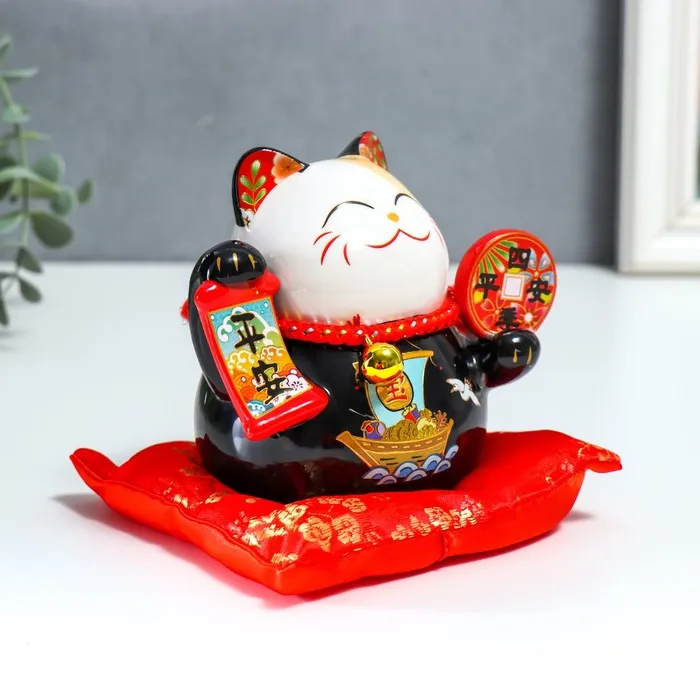 Копилка керамика "Манэки-нэко чёрный с веером и свитком" 9х8х11 см — Характеристики
