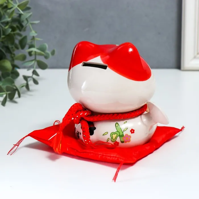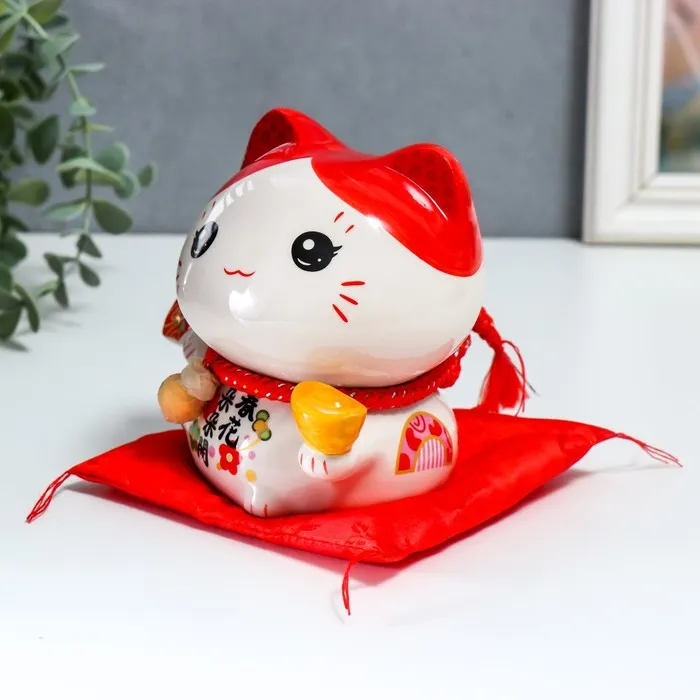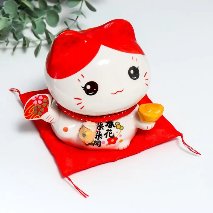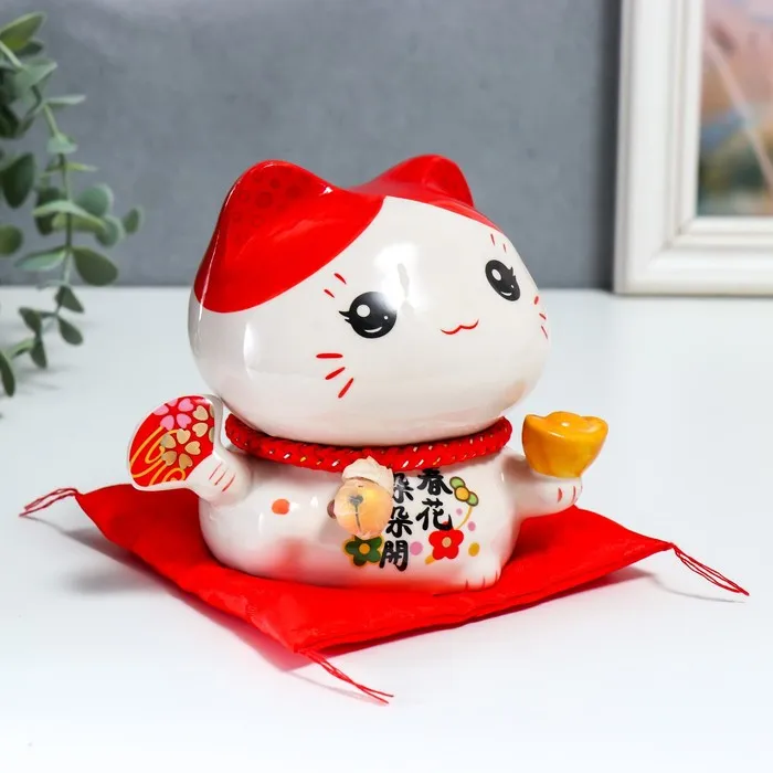 Копилка керамика "Манэки-нэко с цветочным веером" 12,5х10х11 см — Характеристики