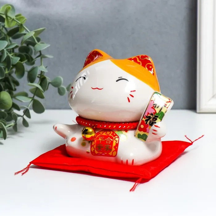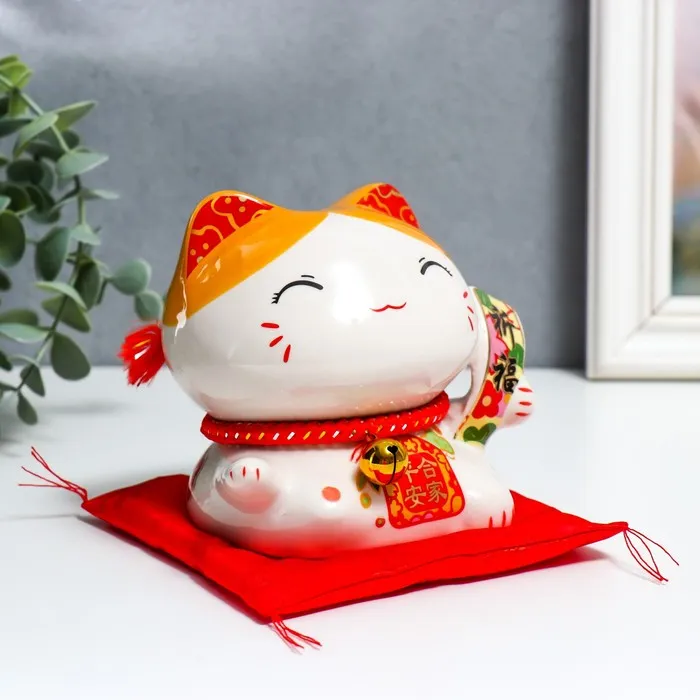 Копилка керамика "Манэки-нэко с цветочными иероглифами" 12,5х10х11 см — Характеристики