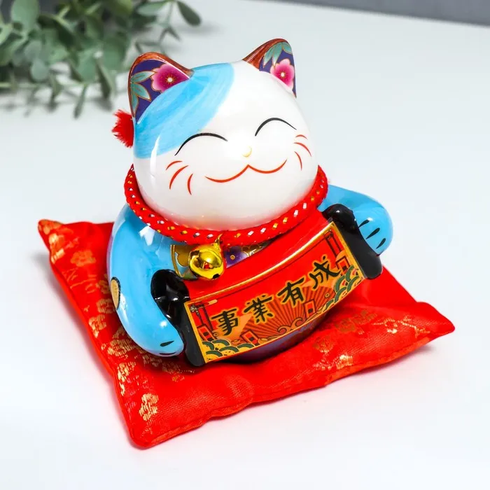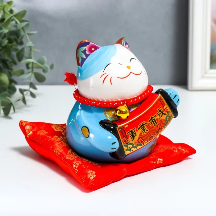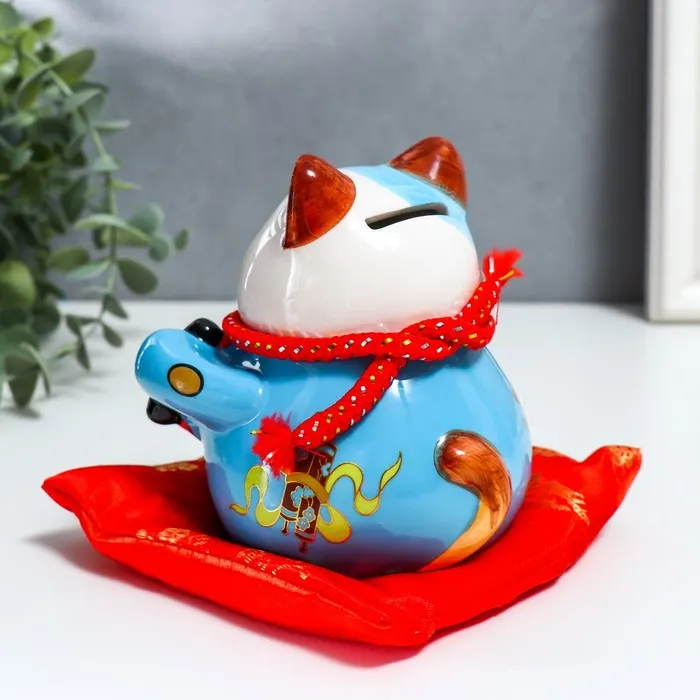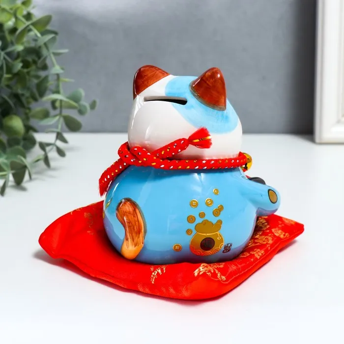 Копилка керамика "Манэки-нэко синий с гармонью" 9х8х11 см — Характеристики