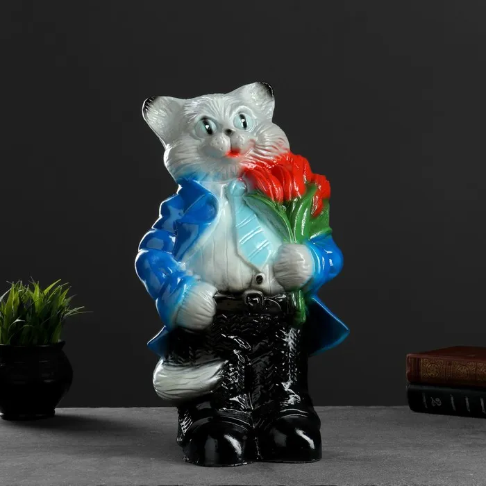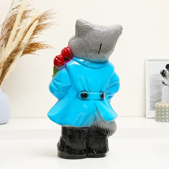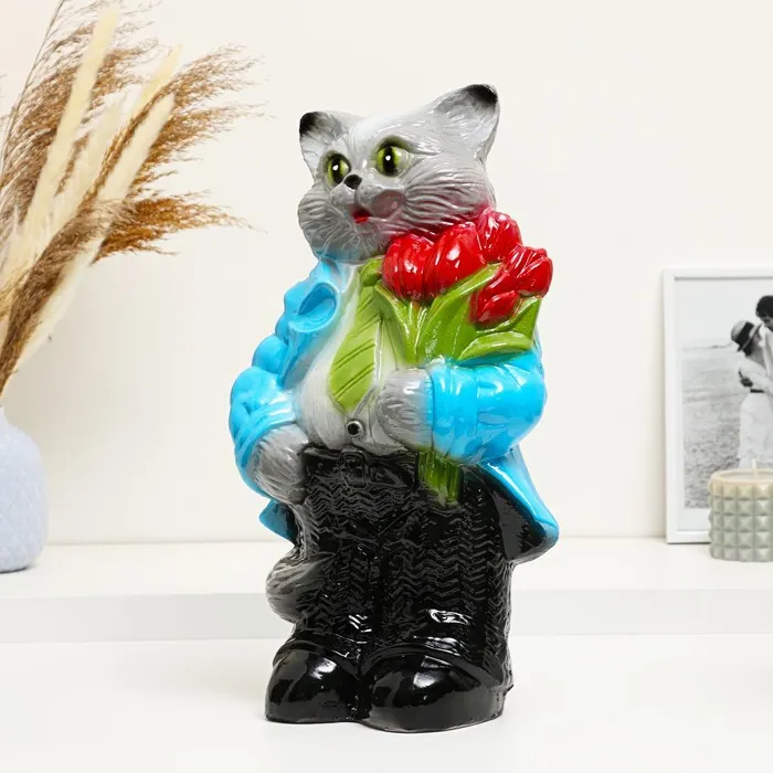 Копилка "Кот большой с тюльпанами" серый 20х23х41см МИКС — Характеристики