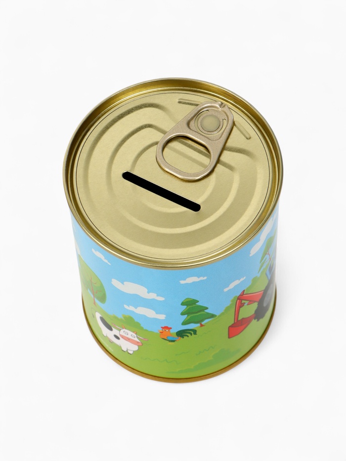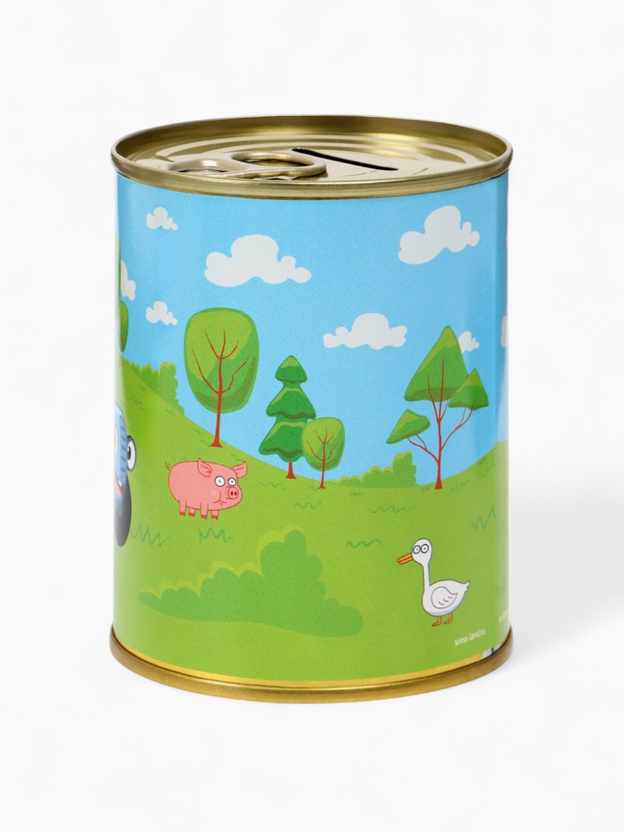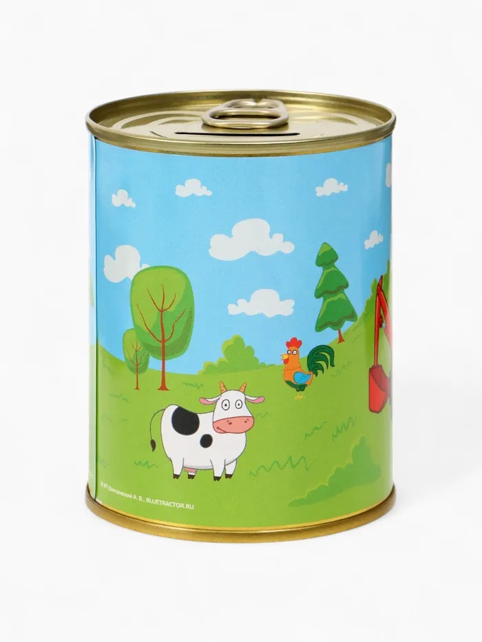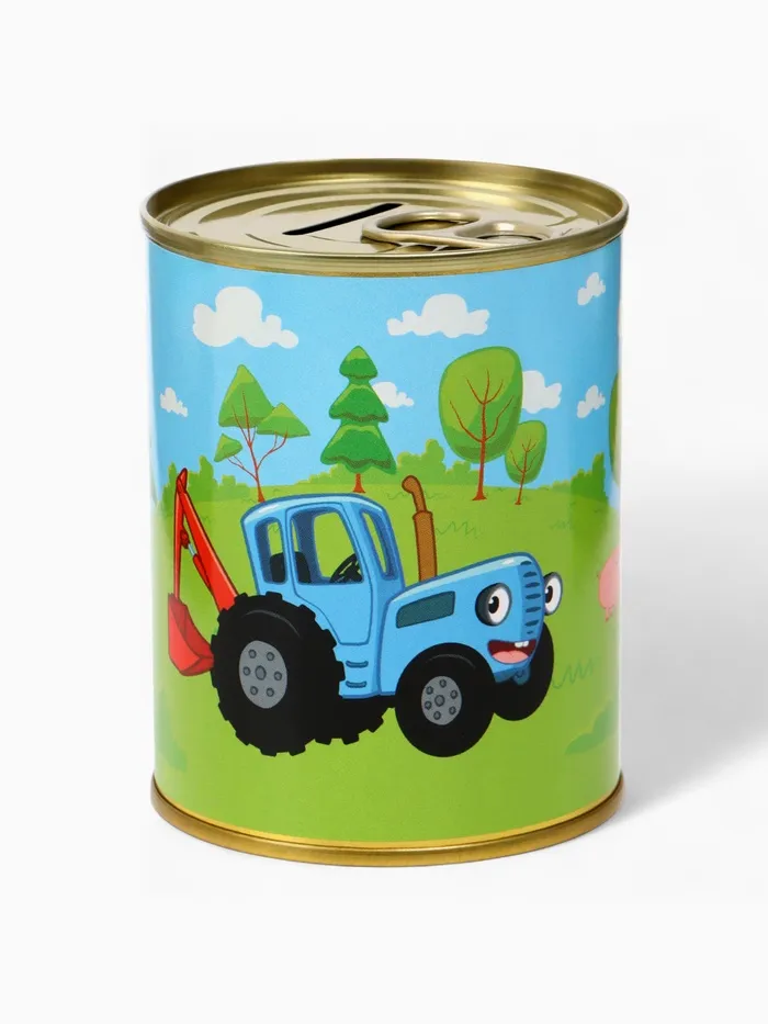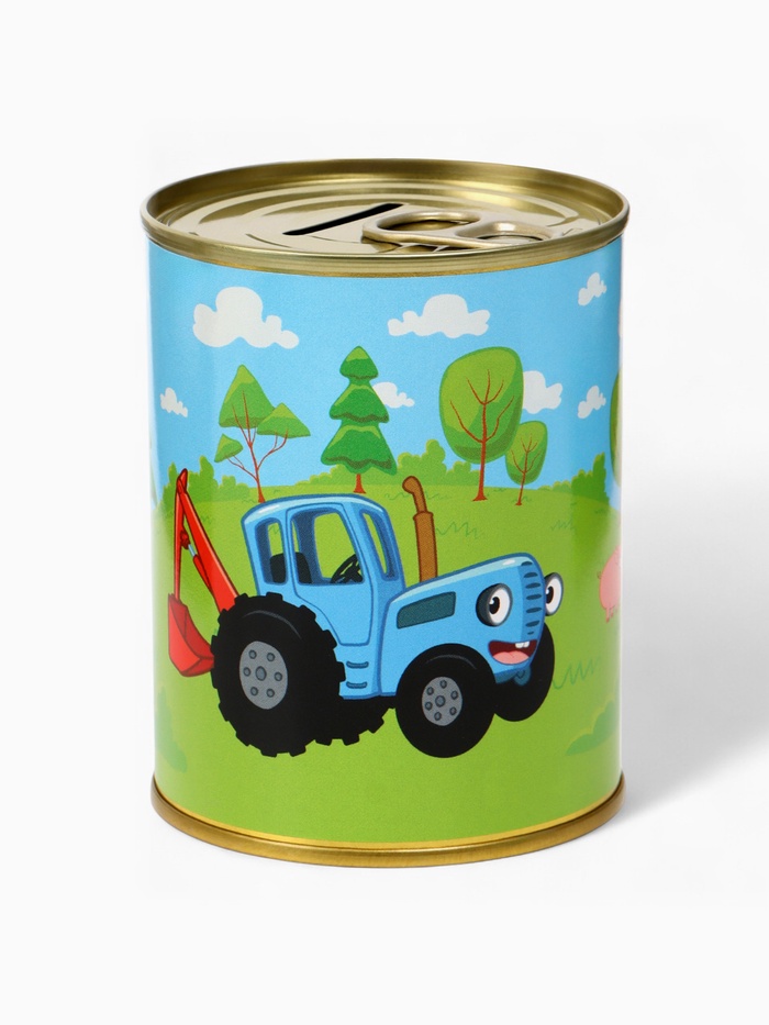 Копилка металлическая в форме банки с ярким принтом «Синий трактор» — стильный способ копить монеты. Размер: 9,5×7,5×7,5 см. Идеальна для детей и любителей мультфильмов. Добавит уюта в интерьер детской комнаты и привьёт привычку к экономии!