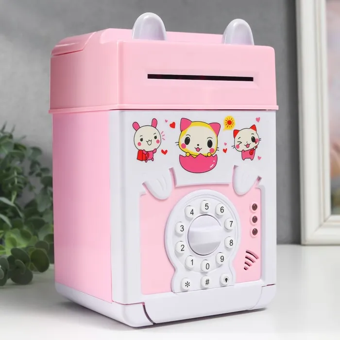 Копилка для денег, монет и купюр «Сейф», пластик, кодовый замок, звук, 3АА, 19.5×12.3×13 см, МИКС